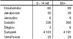 V ORP Šumperk je 7 obcí, kde počet seniorů, tj. osob ve věku 65 a více let v roce 2003 převážil dětskou složku populace (děti do 14 let).
