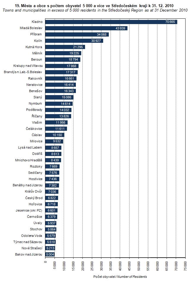 Graf 19 Města a obce s počtem obyvatel 5 000 a více ve Středočeském kraji k 31.12. 2010