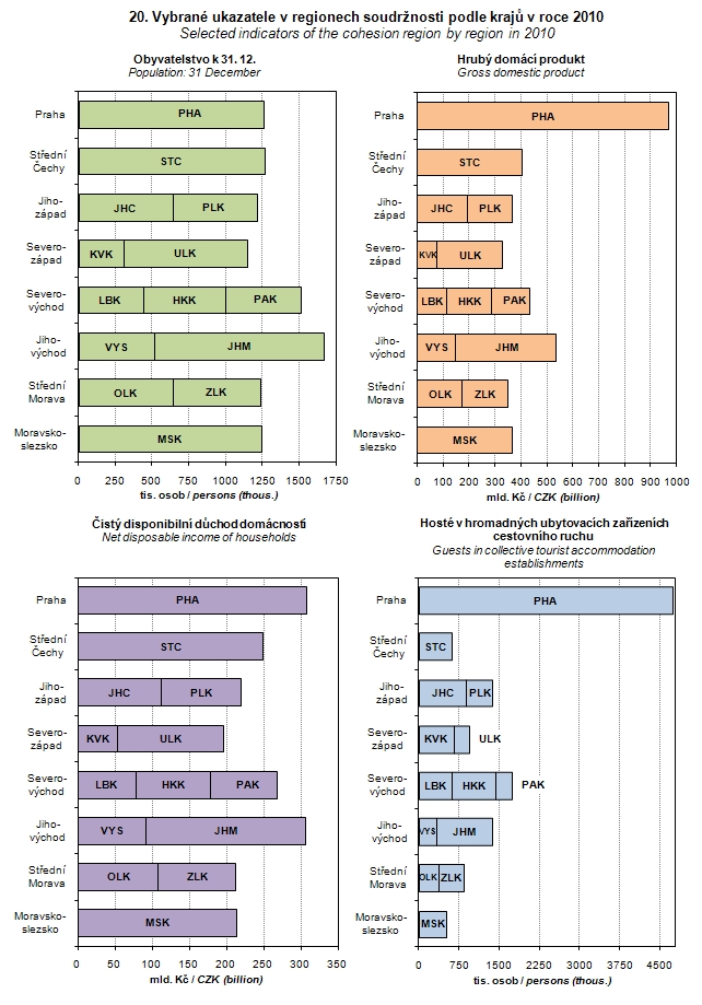 Graf 20 Vybrané ukazatele v regionech soudržnosti podle krajů