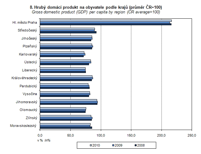 Graf 8 Hrubý domácí produkt na obyvatele podle krajů