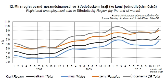 Graf 12 Míra registrované nezaměstnanosti ve Středočeském kraji