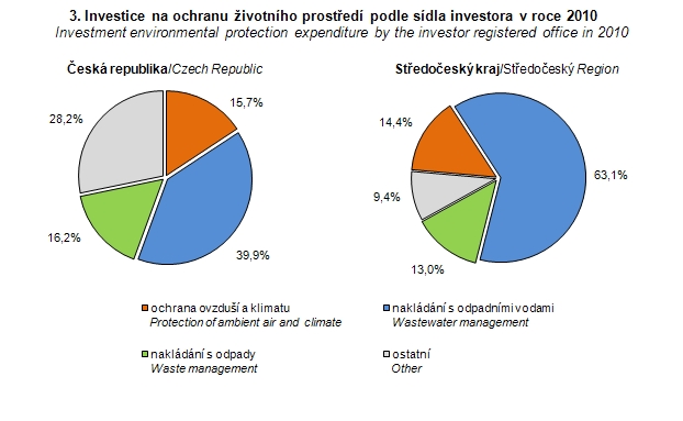 Graf 3 Investice na ochranu životního prostředí podle sídla investora v roce 2010