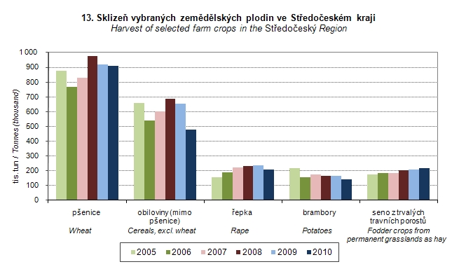 Graf 13 Sklizeň vybraných zemědělských plodin ve Středočeském kraji