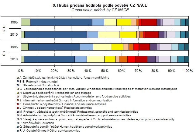 Graf 9 Hrubá přidaná hodnota podle odvětví CZ-NACE