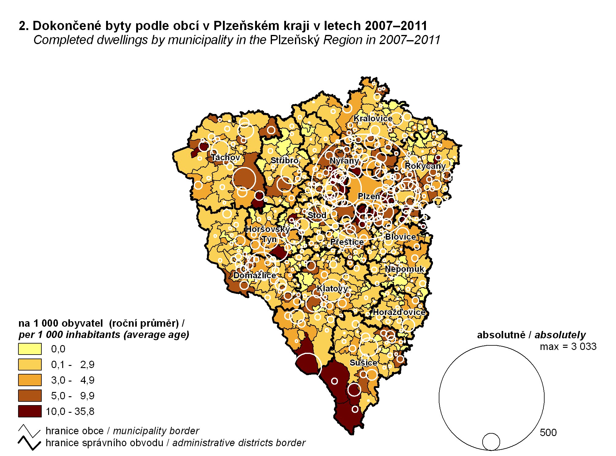 2. Dokončené byty podle obcí v Plzeňském kraji v letech 2007–2011