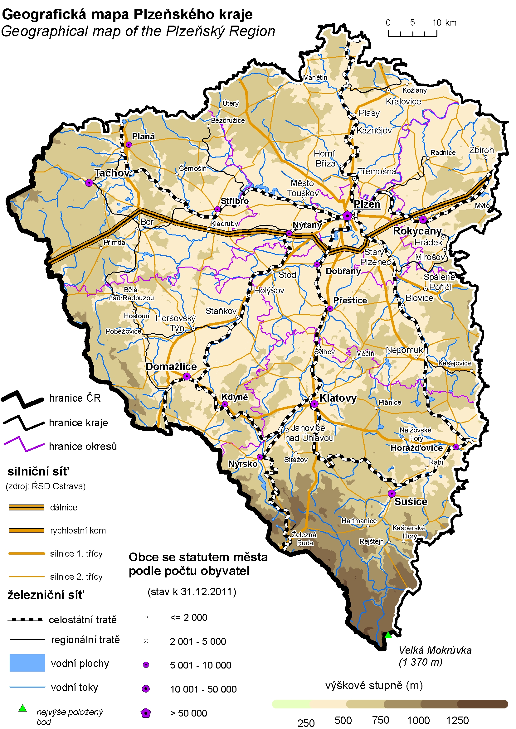 Geografická mapa Plzeňského kraje