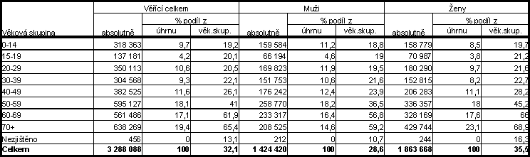 Skladba obyvatelstva podle náboženského vyznání, pohlaví a podle věku