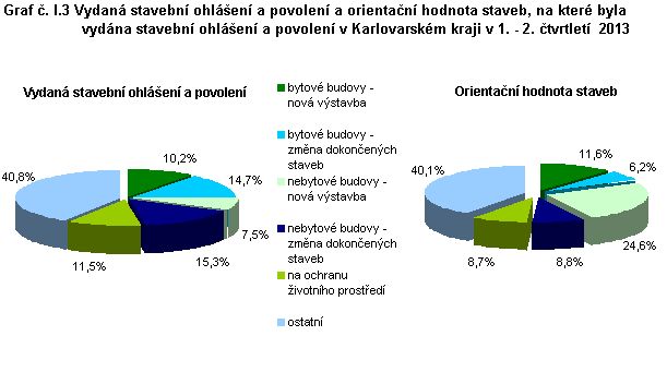 Tab. I.2 Orientační hodnota staveb, na které byla vydána stavební ohlášení a povolení v Karlovarském kraji a jeho okresech