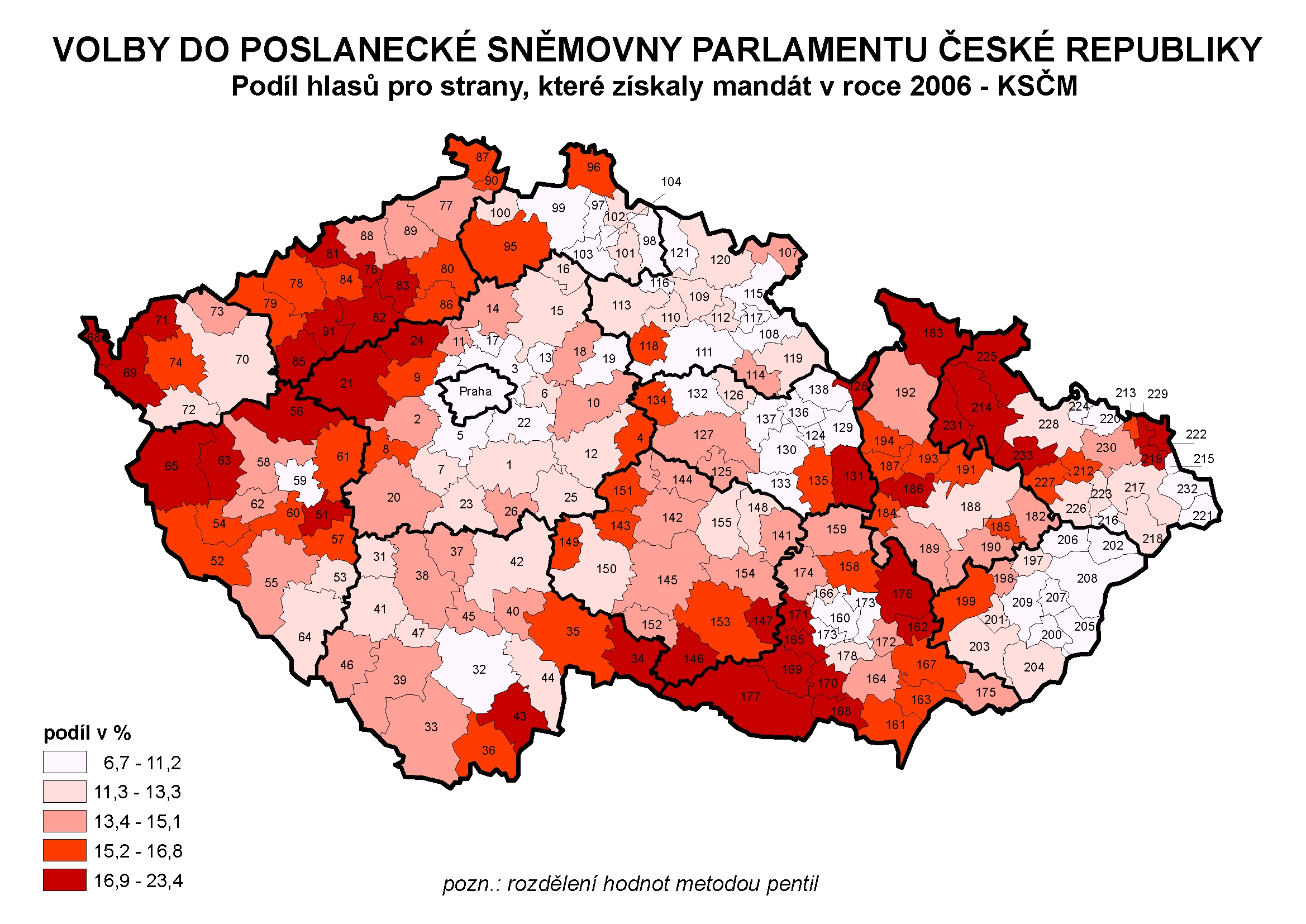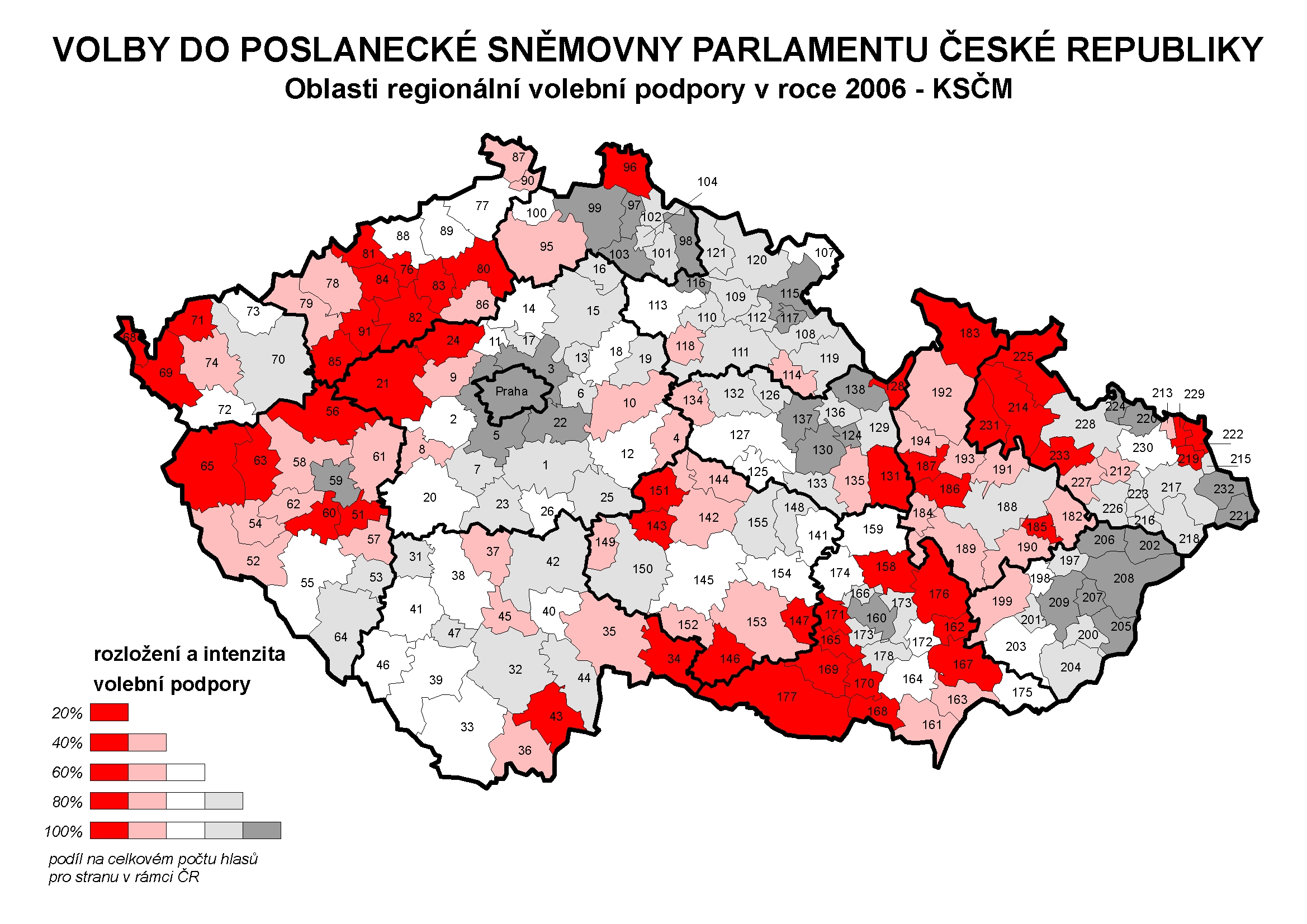 Oblasti regionální volební podpory v roce 2006 - KSČM