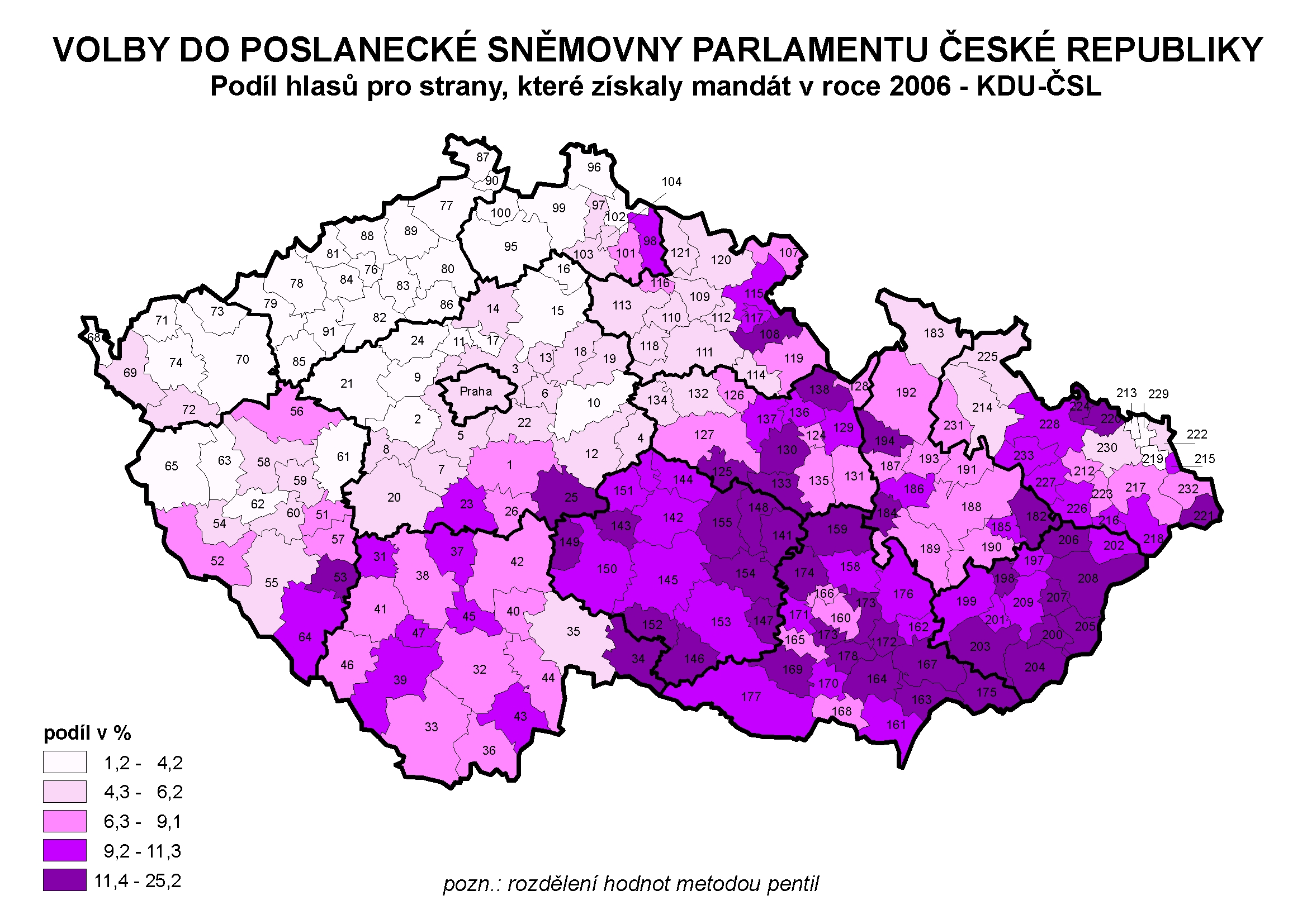 Podíl hlasů pro strany, které získaly mandát v roce 2006 - KDU-ČSL