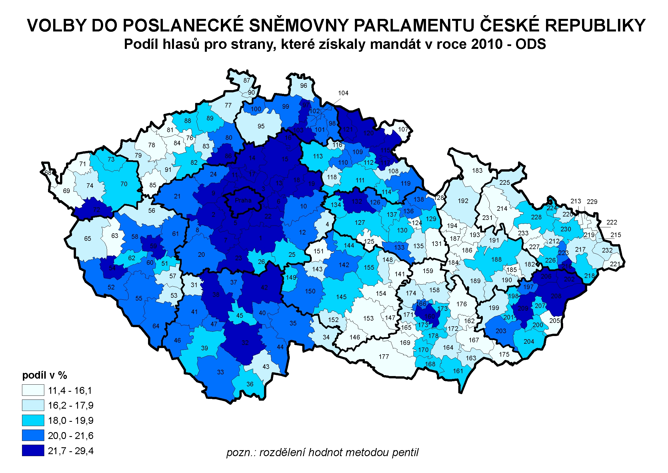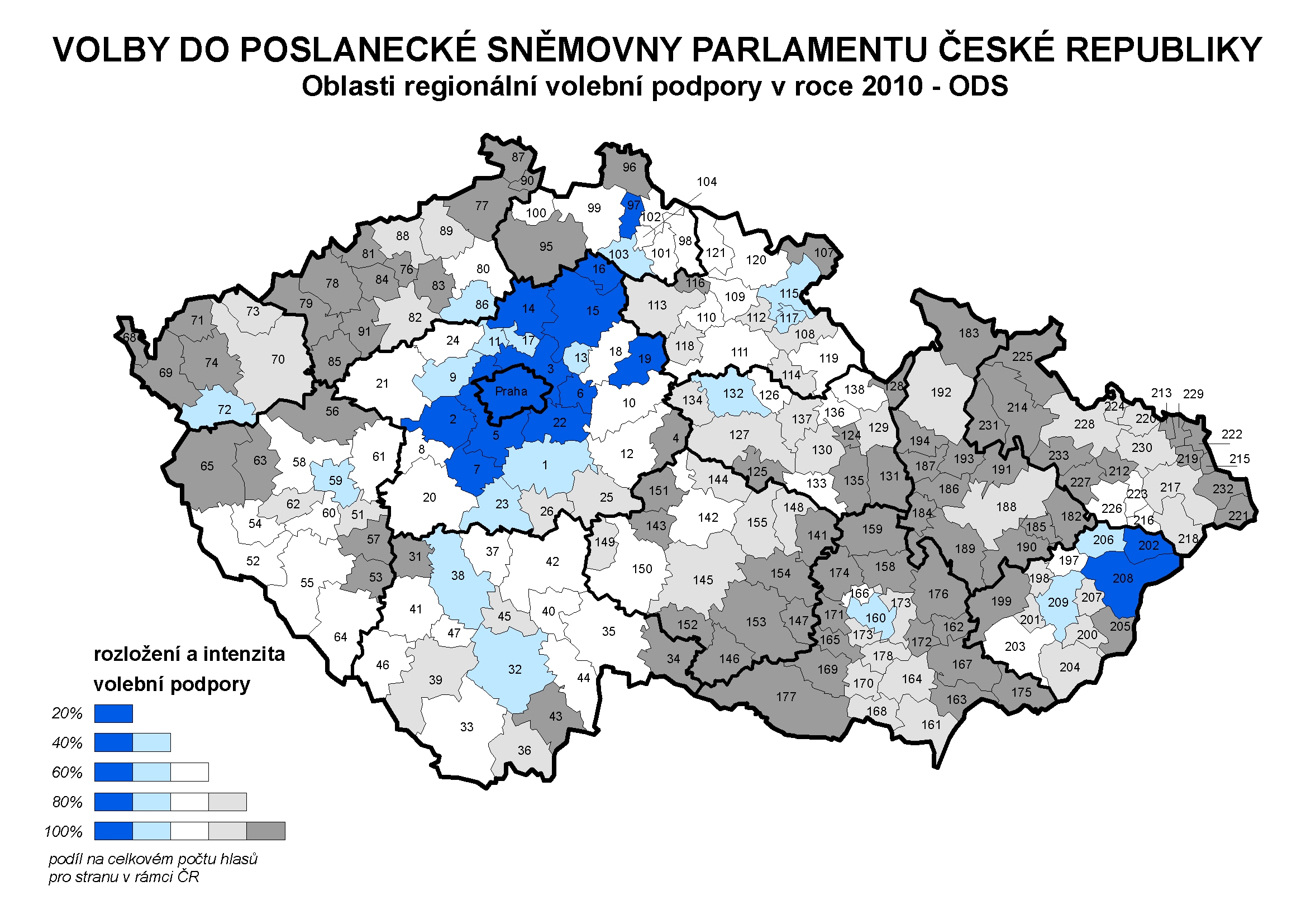 Oblasti regionální volební podpory v roce 2010 - ODS