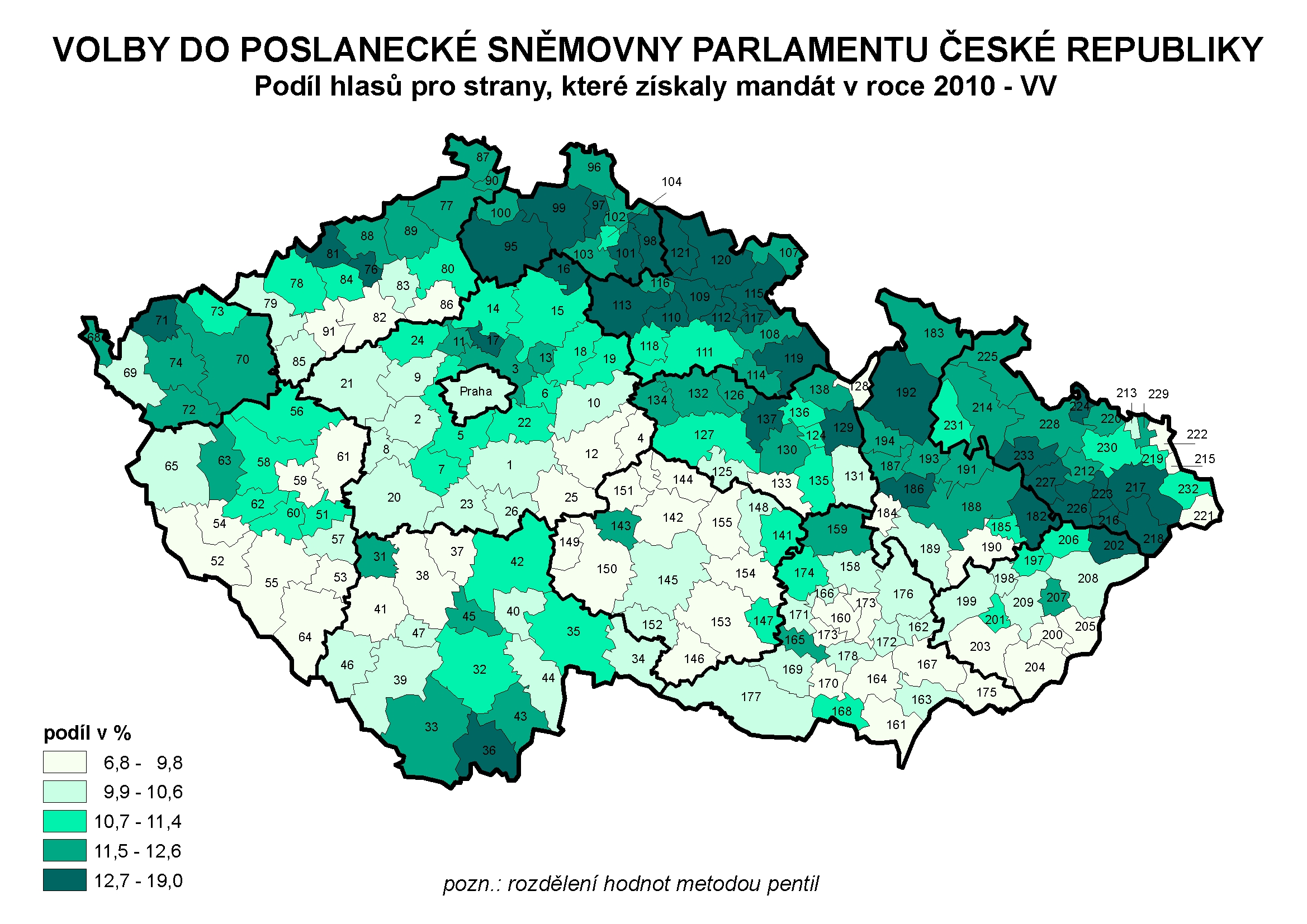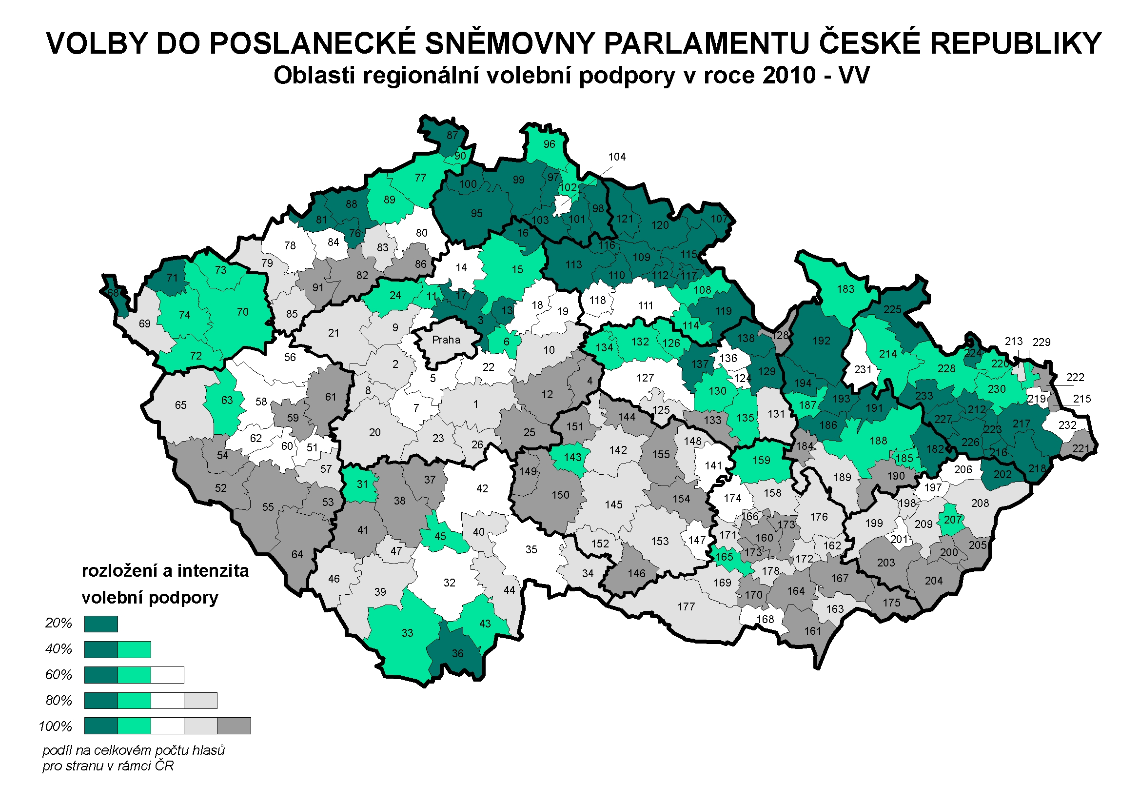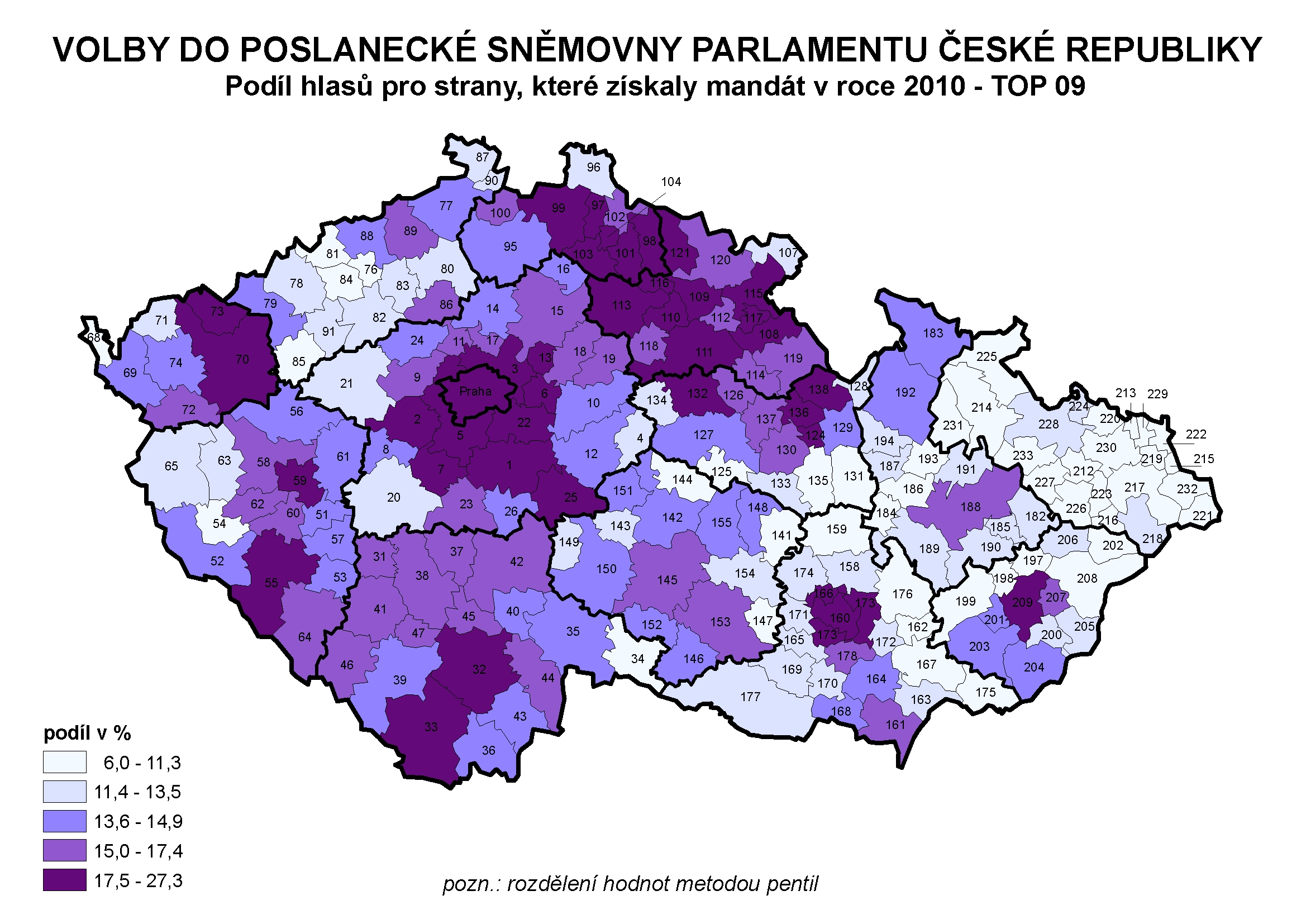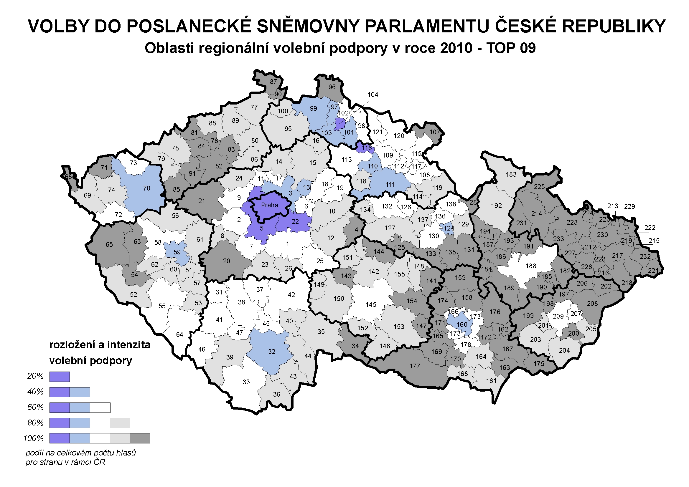 Oblasti regionální volební podpory v roce 2010 - TOP 09