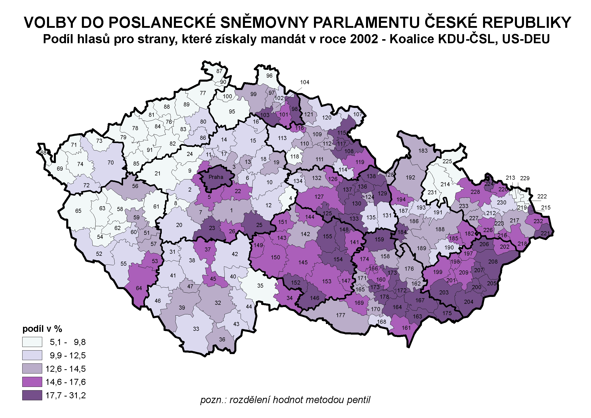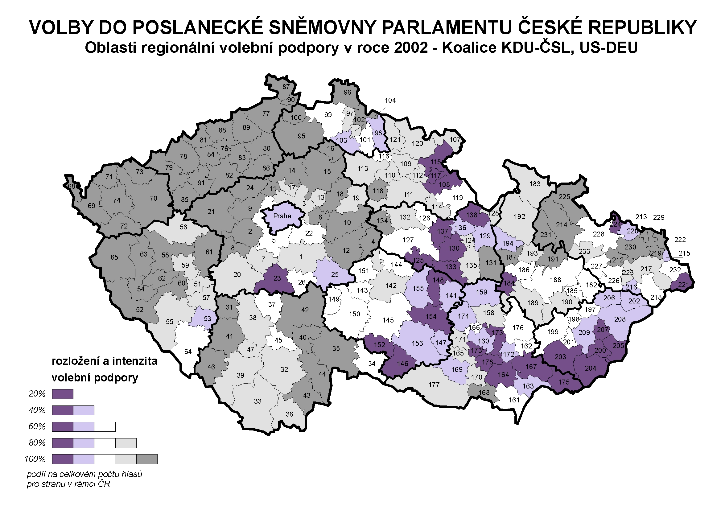Oblasti regionální volební podpory v roce 2002 - Koalice KDU-ČSL, US-DEU