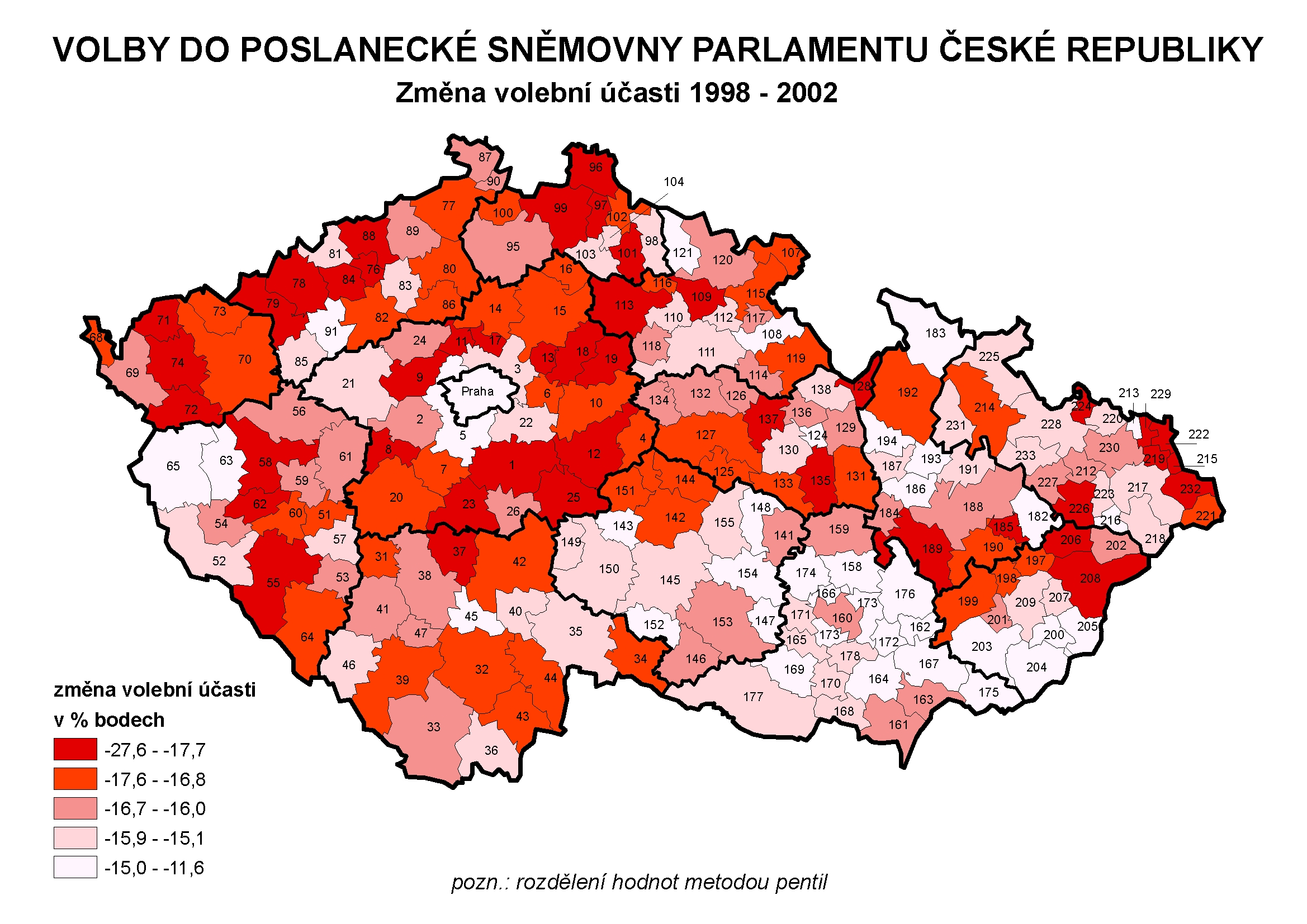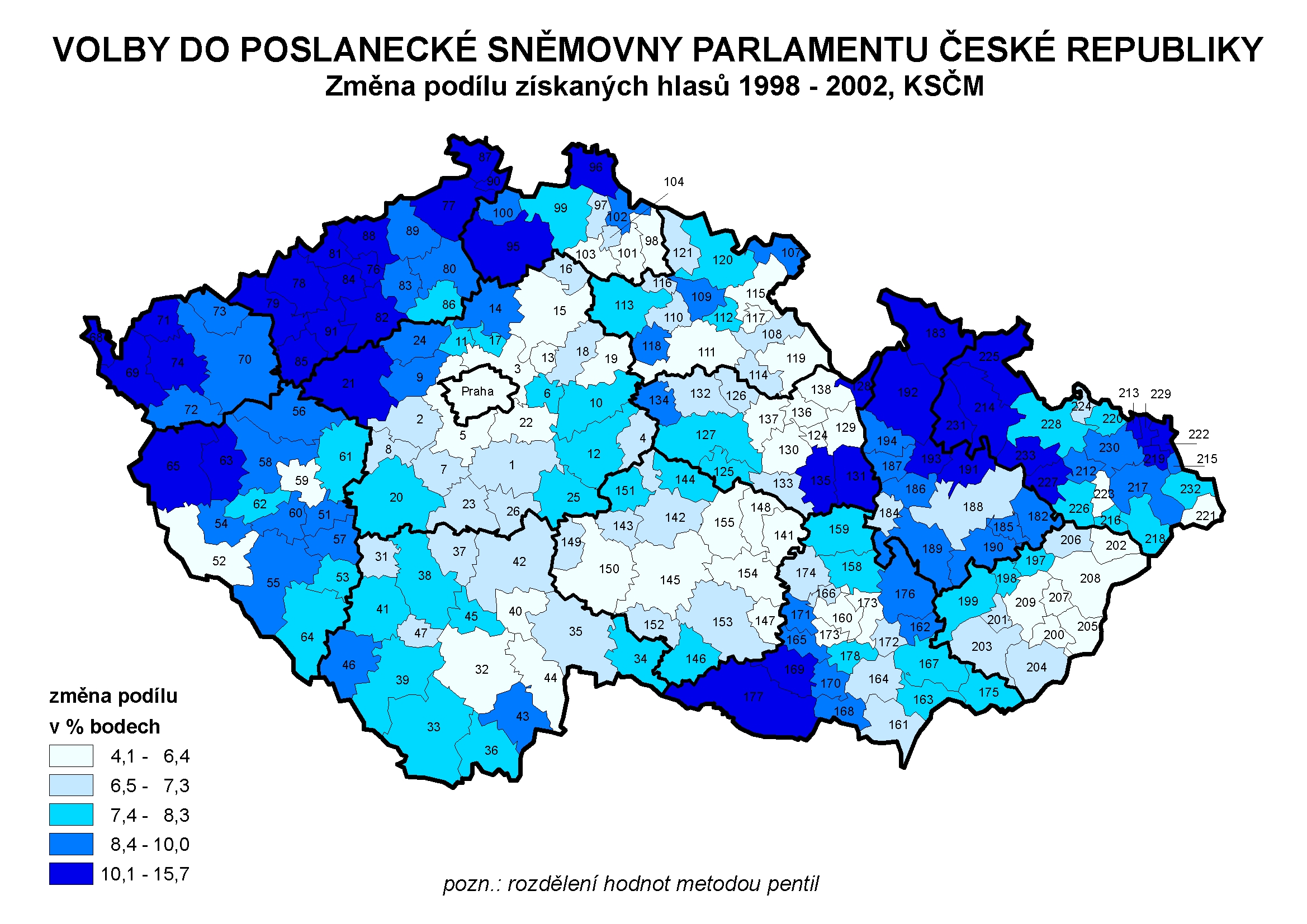 Změna podílu získaných hlasů 1998 - 2002, KSČM