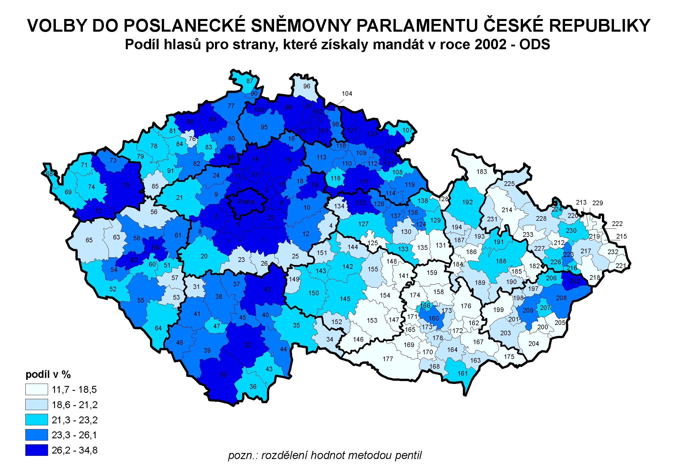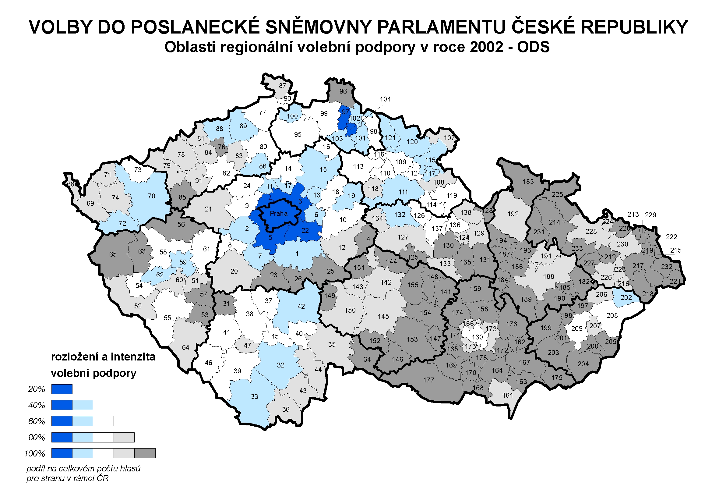 Oblasti regionální volební podpory v roce 2002 - ODS