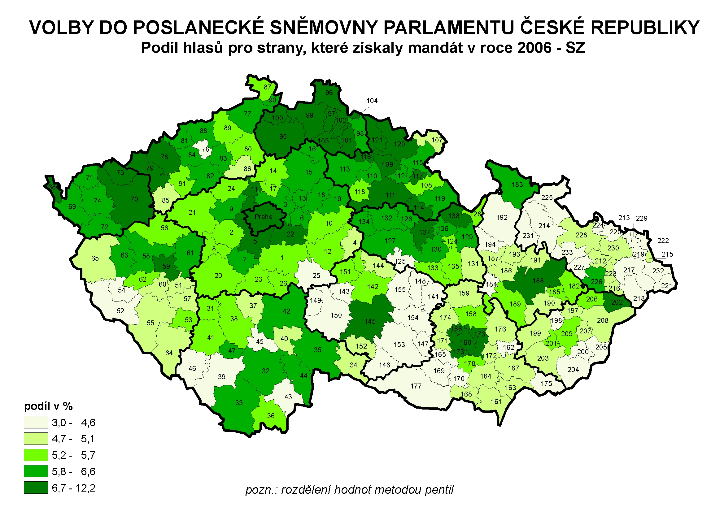 Podíl hlasů pro strany, které získaly mandát v roce 2006 - SZ