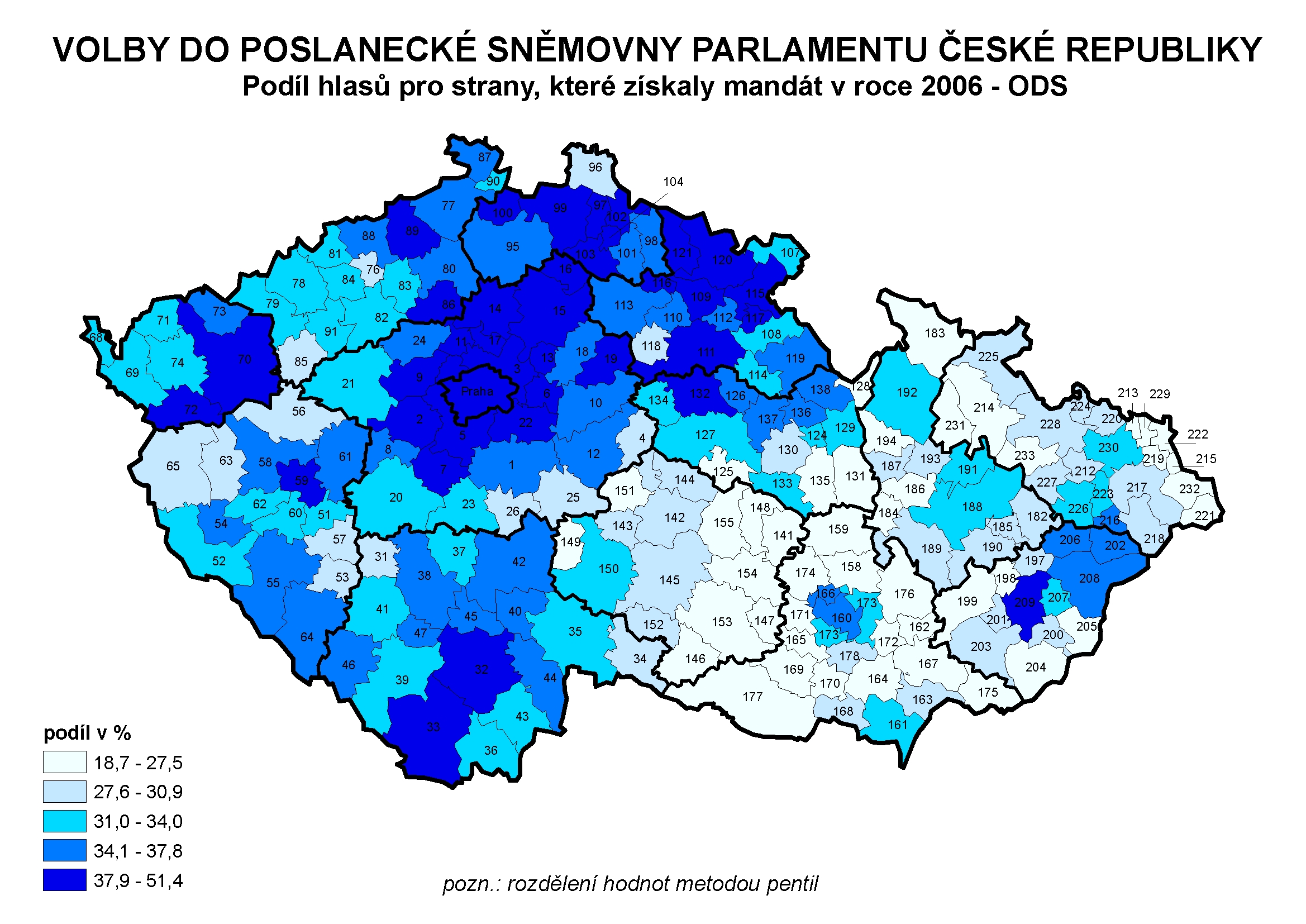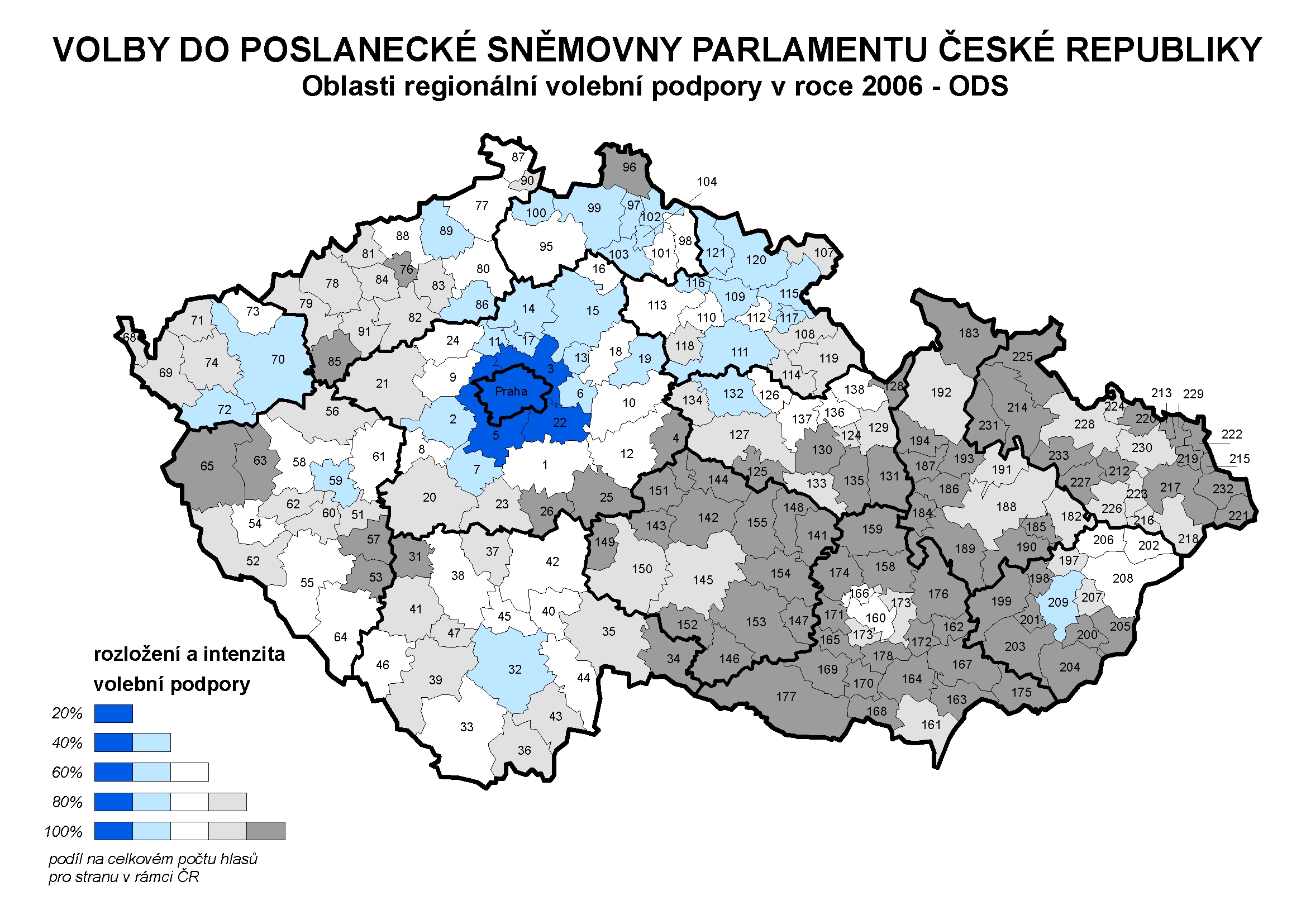 Oblasti regionální volební podpory v roce 2006 - ODS