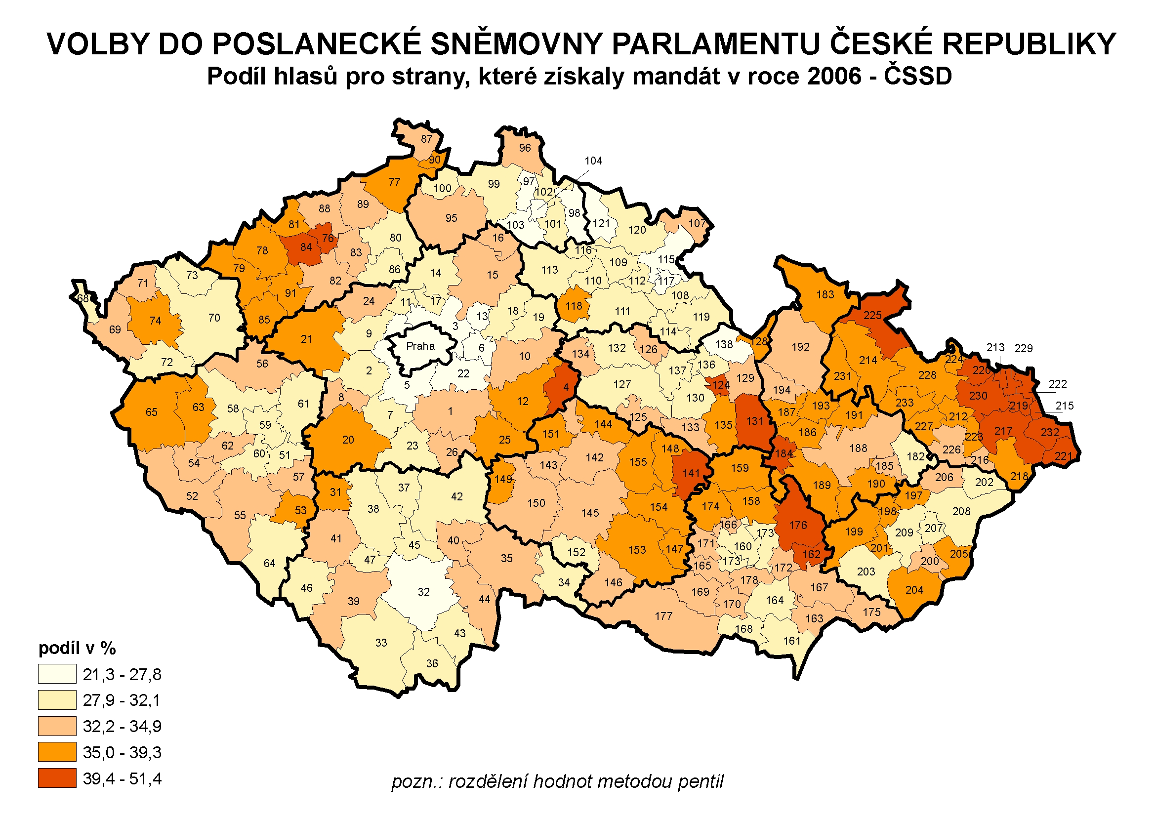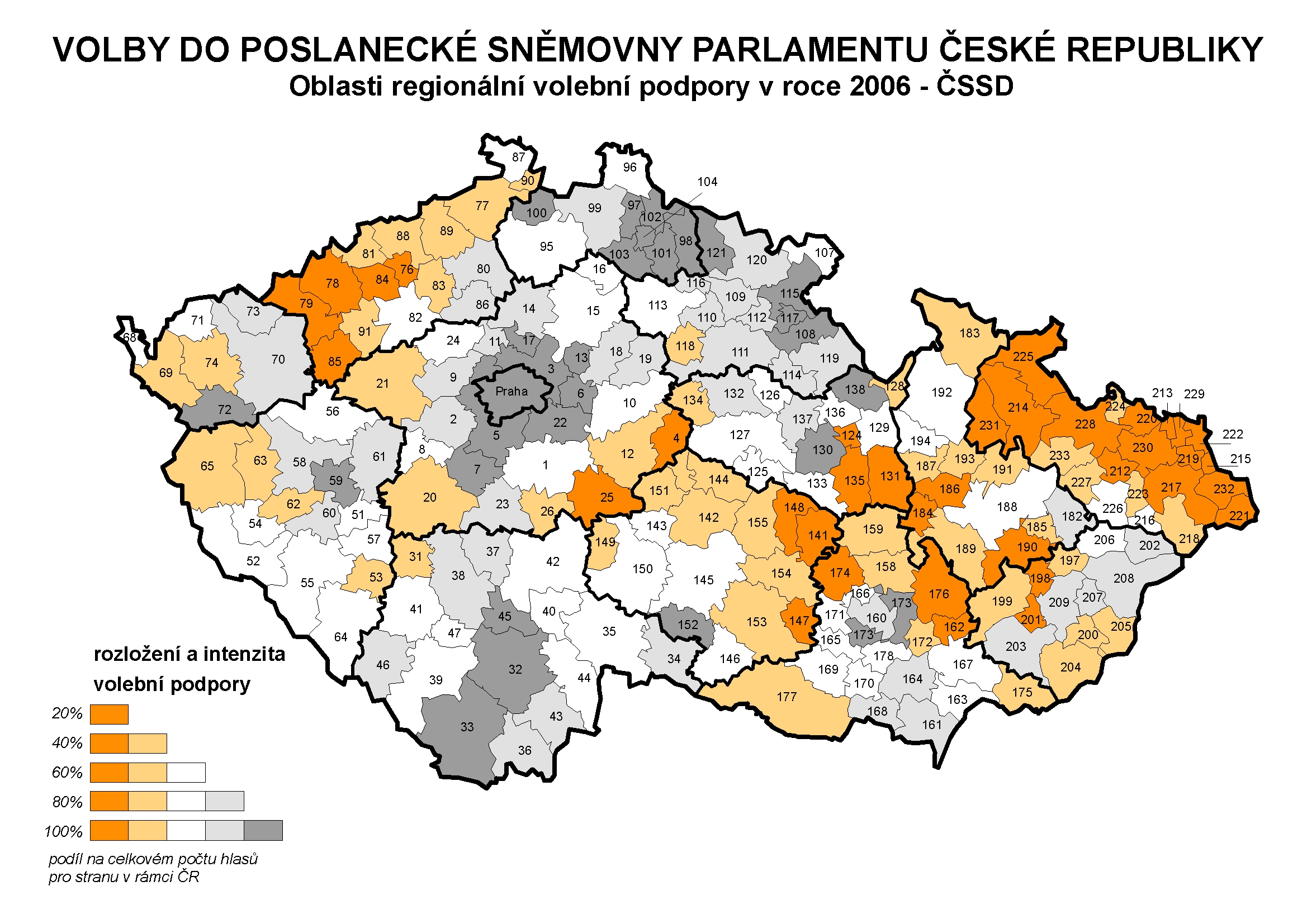 Oblasti regionální volební podpory v roce 2006 - ČSSD