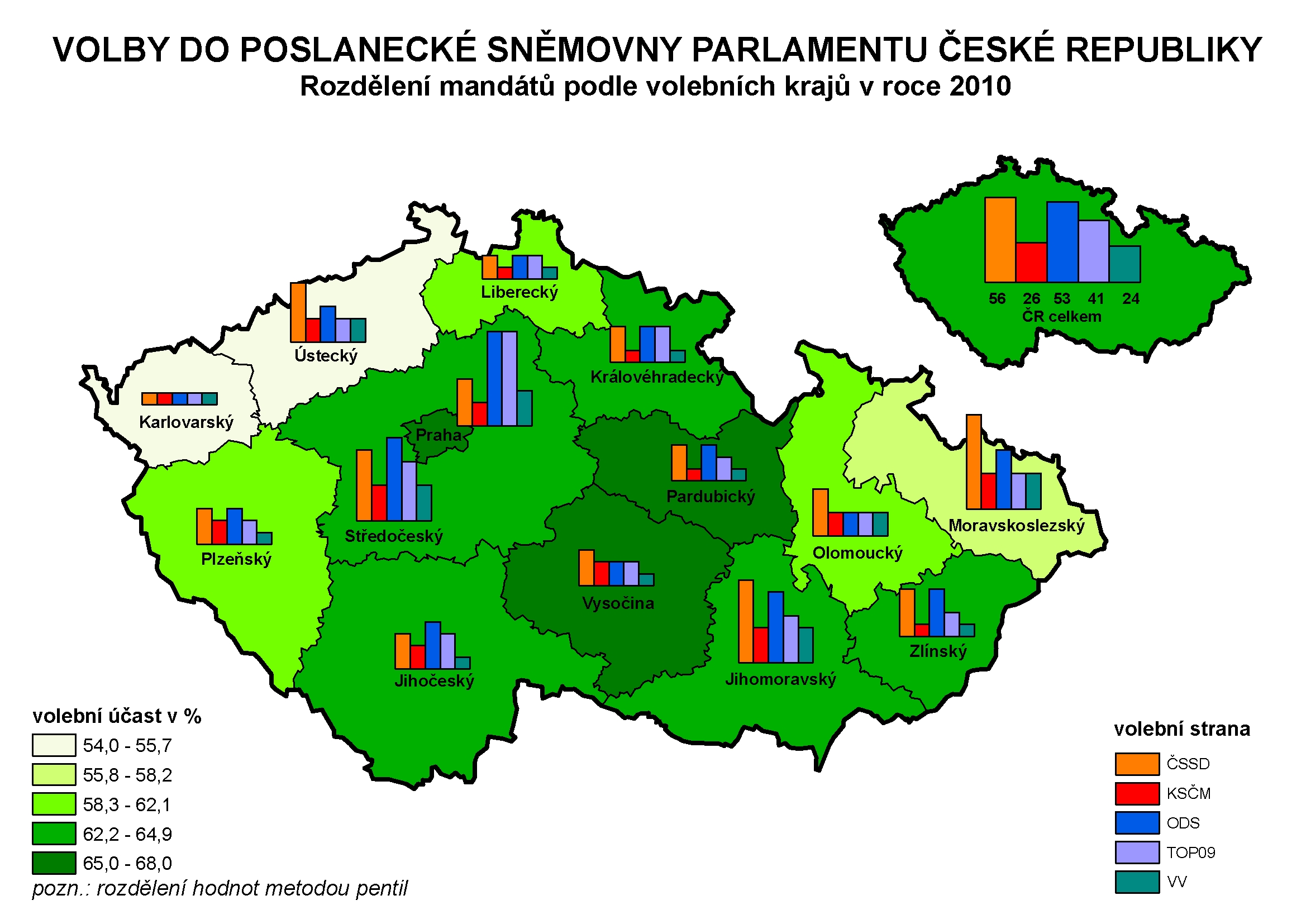 Rozdělení mandátů podle volebních krajů v roce 2010