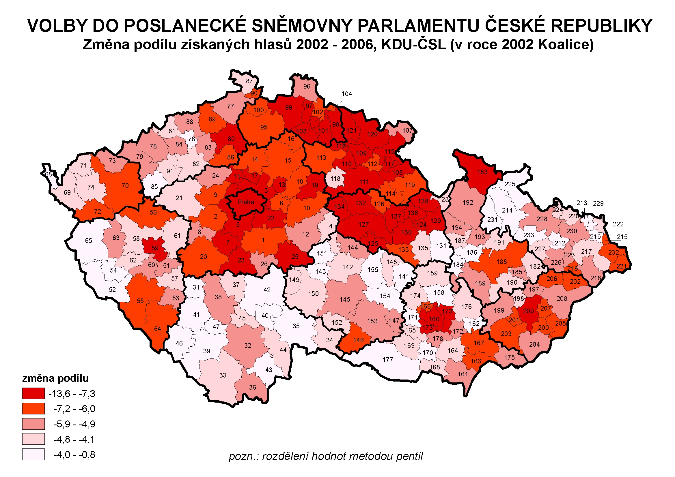 Změna podílu získaných hlasů 2002 - 2006, KDU-ČSL (v roce 2002 Koalice)