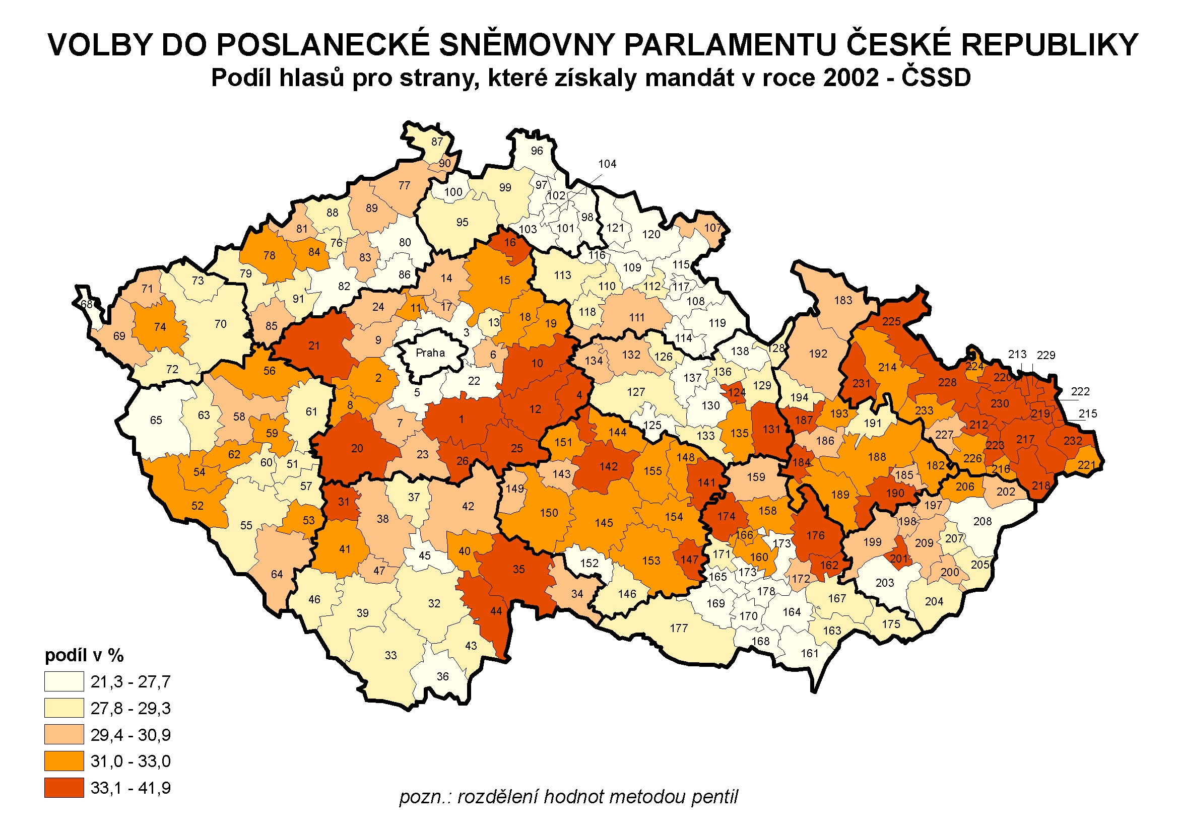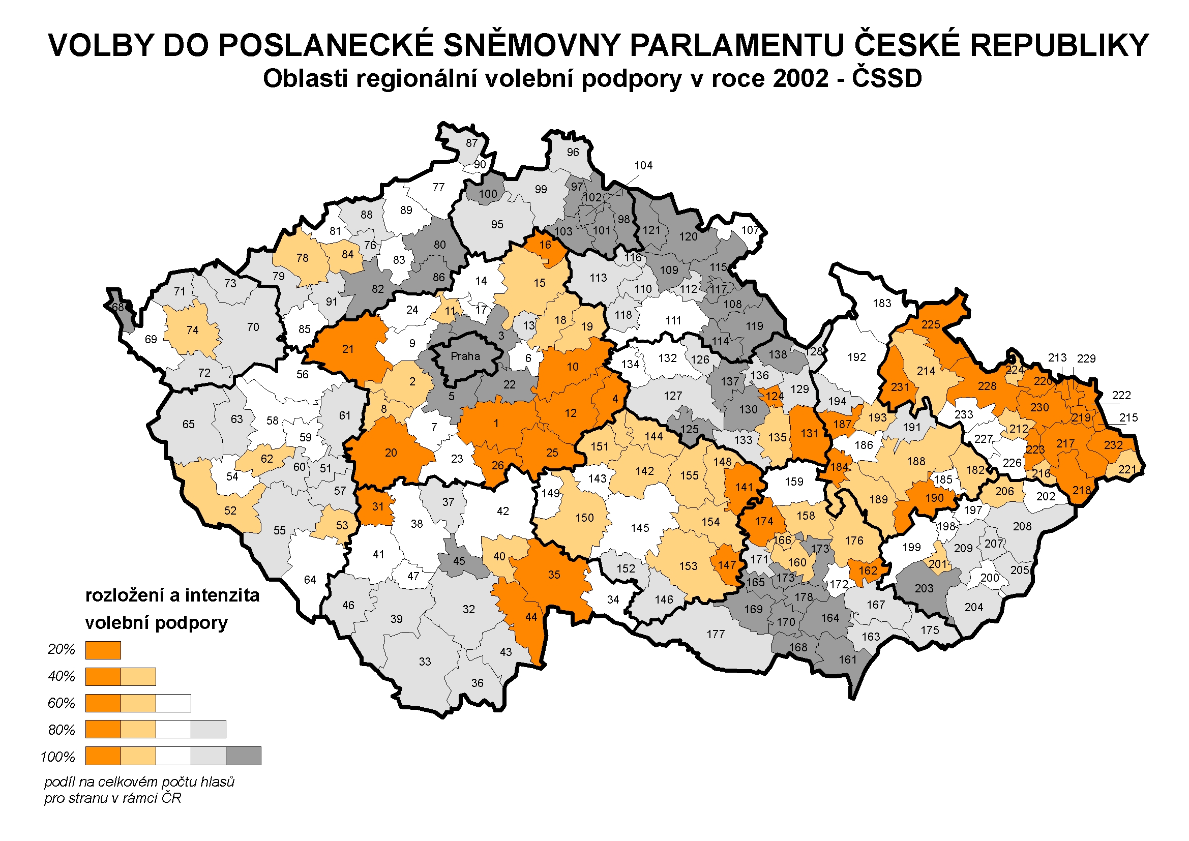 Oblasti regionální volební podpory v roce 2002 - ČSSD