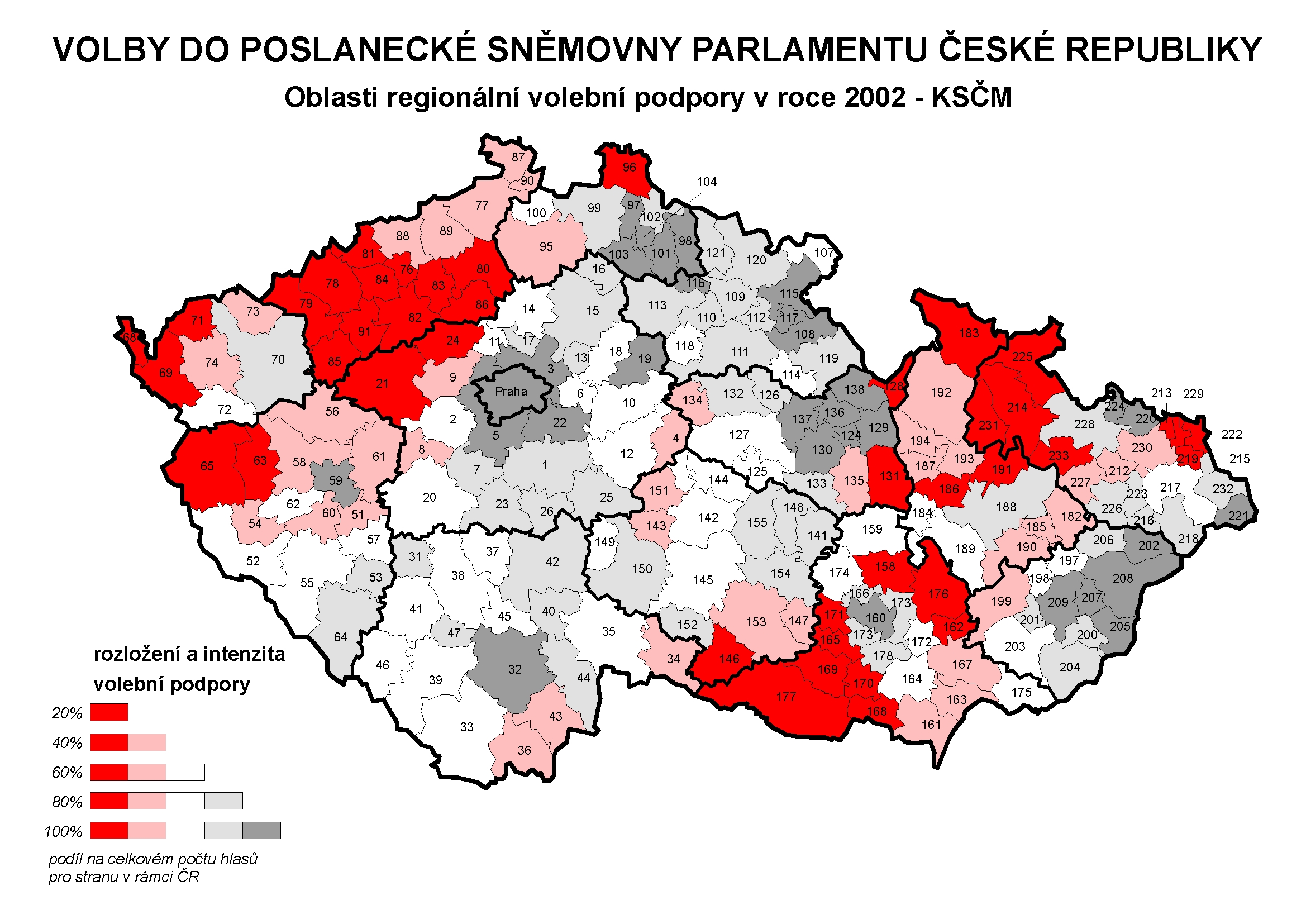 Oblasti regionální volební podpory v roce 2002 - KSČM