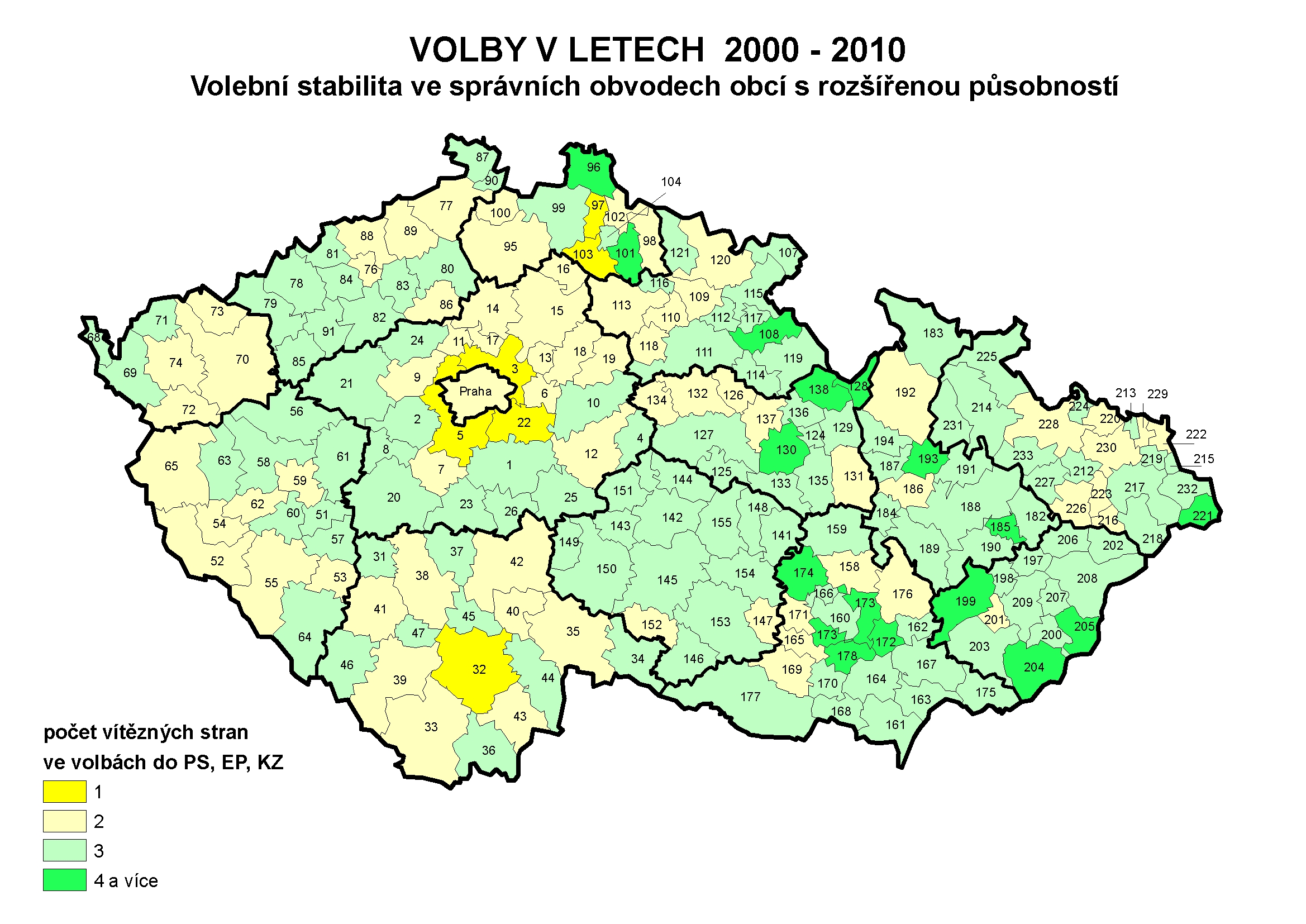 Volební stabilita ve správních obvodech obcí s rozšířenou působností v letech 2000 - 2010