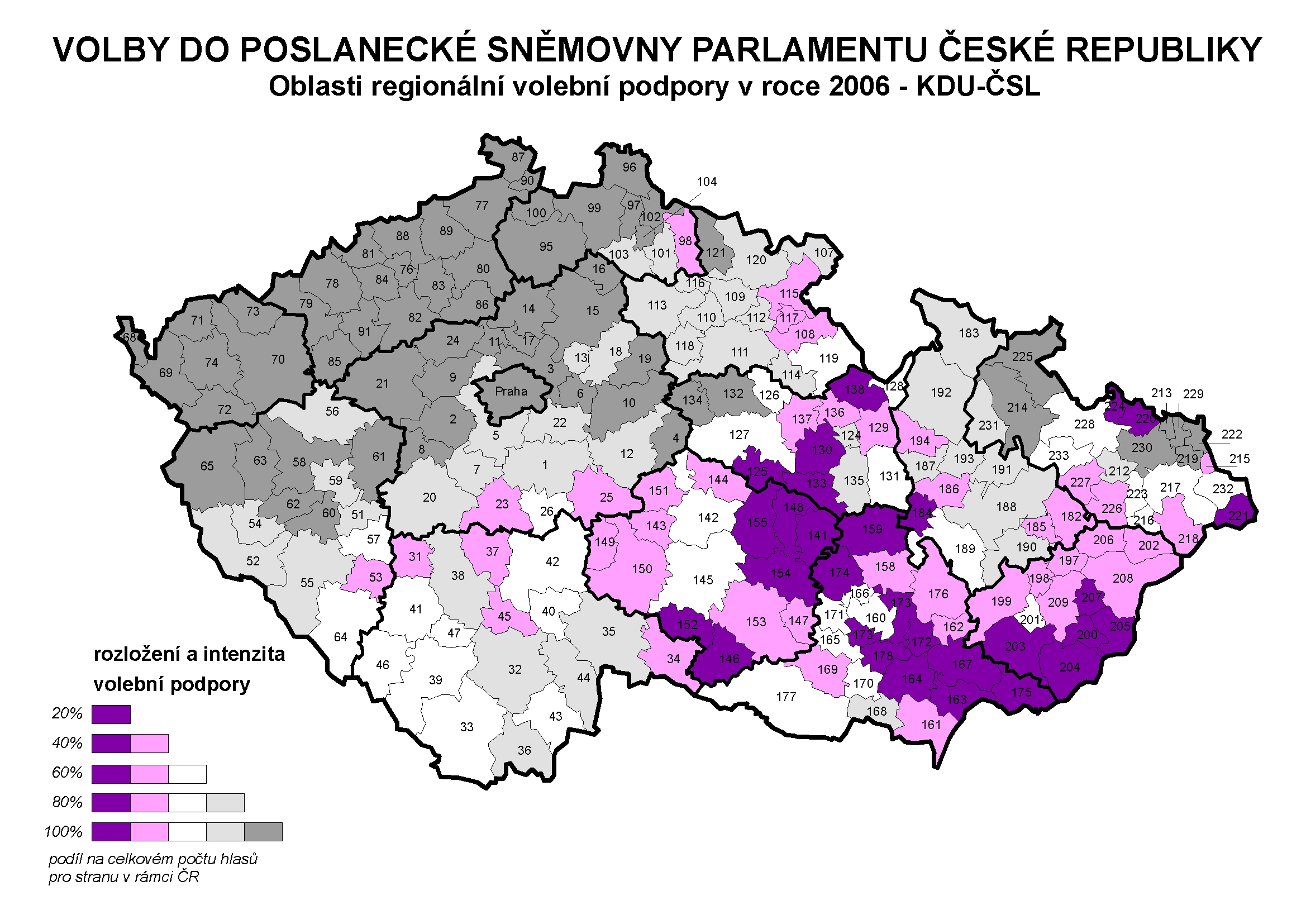 Oblasti regionální volební podpory v roce 2006 - KDU-ČSL