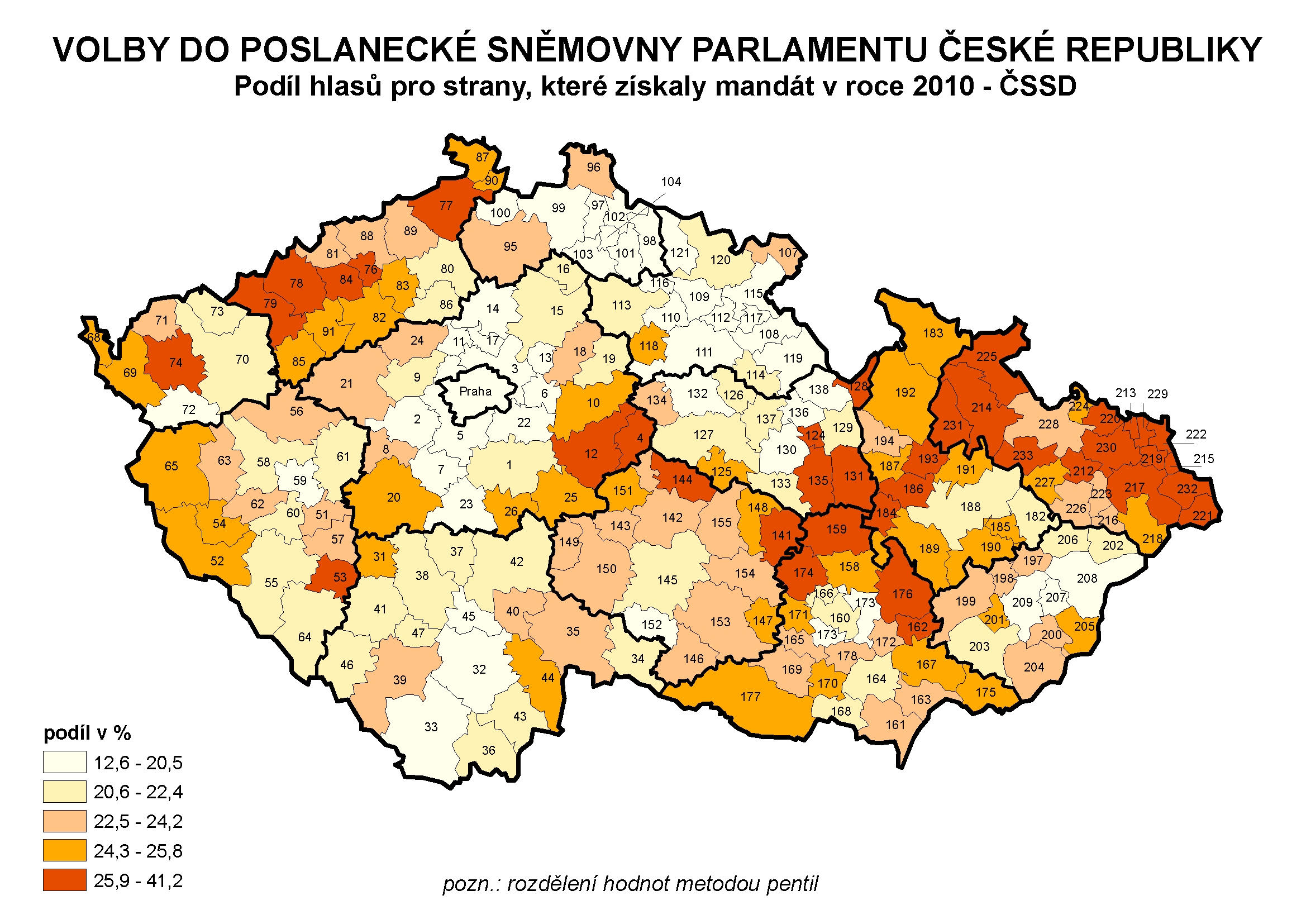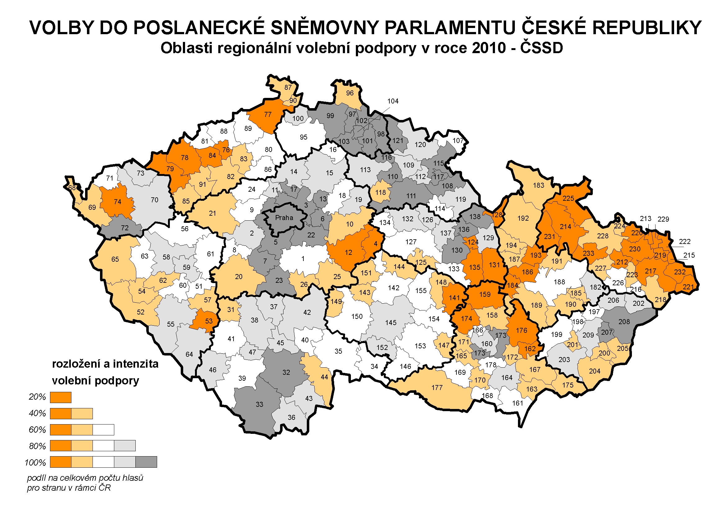 Oblasti regionální volební podpory v roce 2010 - ČSSD