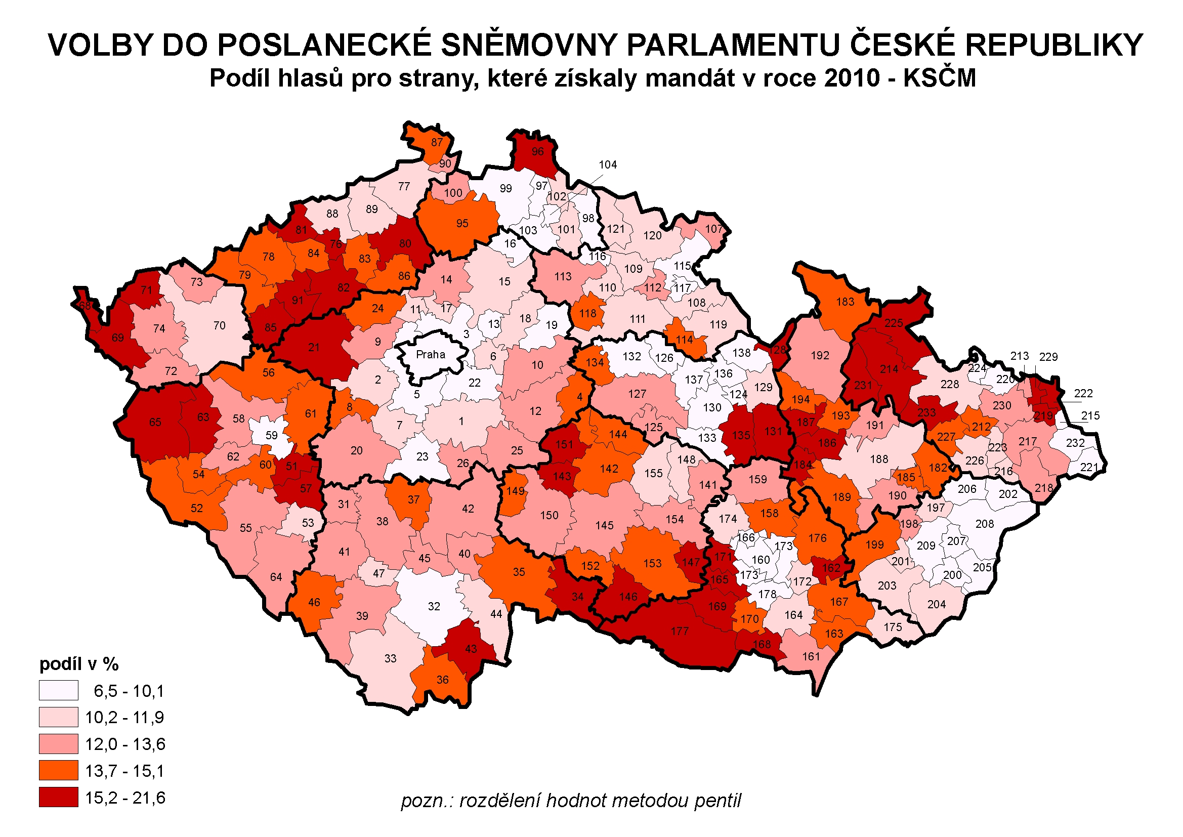 Podíl hlasů pro strany, které získaly mandát v roce 2010 - KSČM