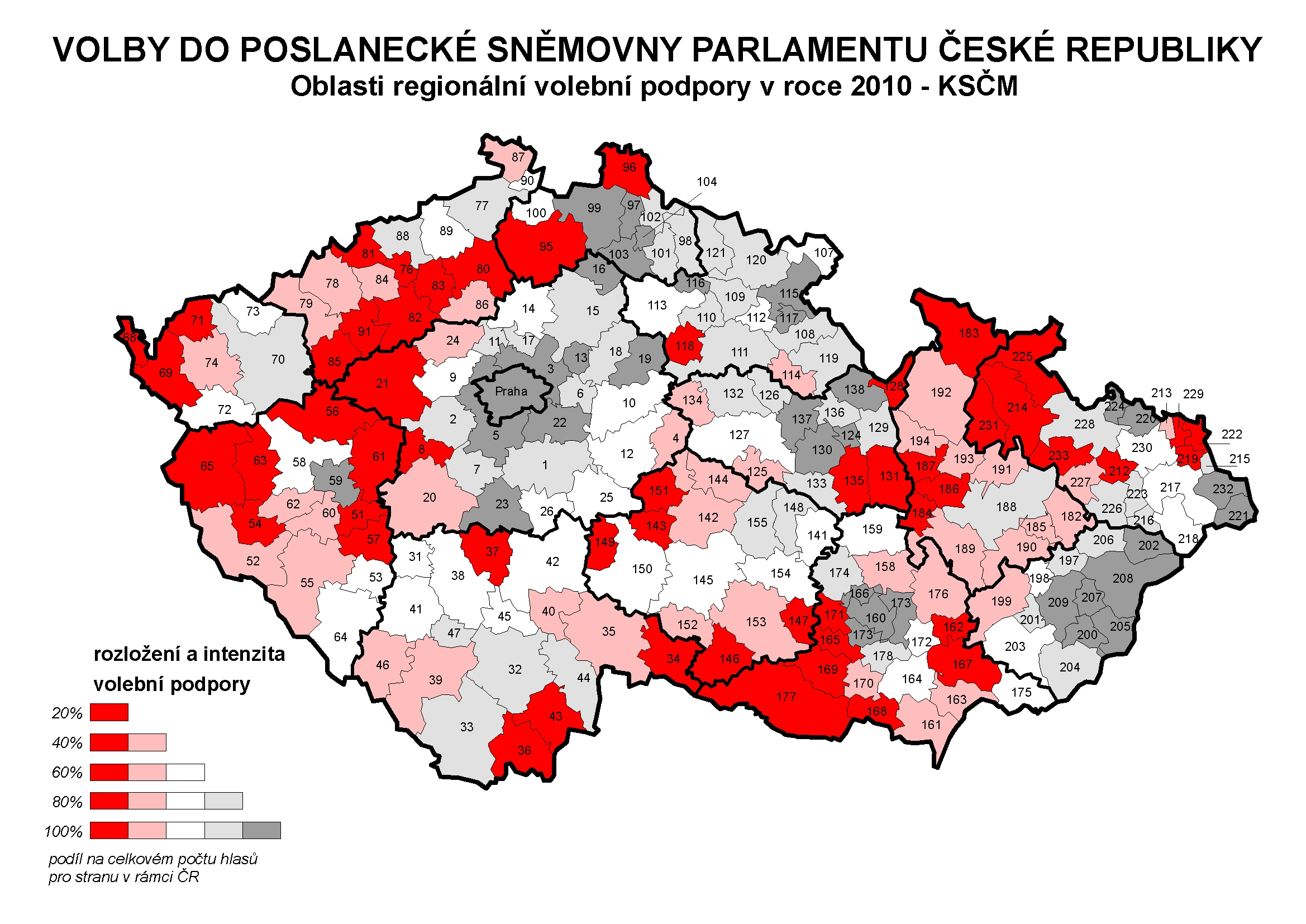 Oblasti regionální volební podpory v roce 2010 - KSČM