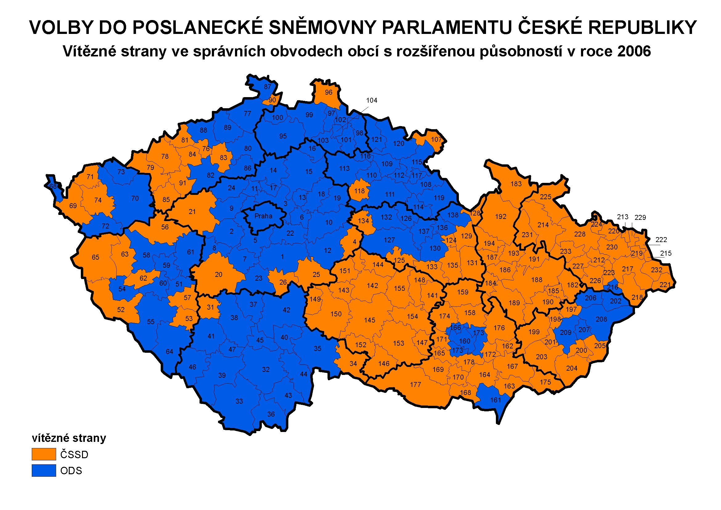 Vítězné strany ve správních obvodech obcí s rozšířenou působností v roce 2006