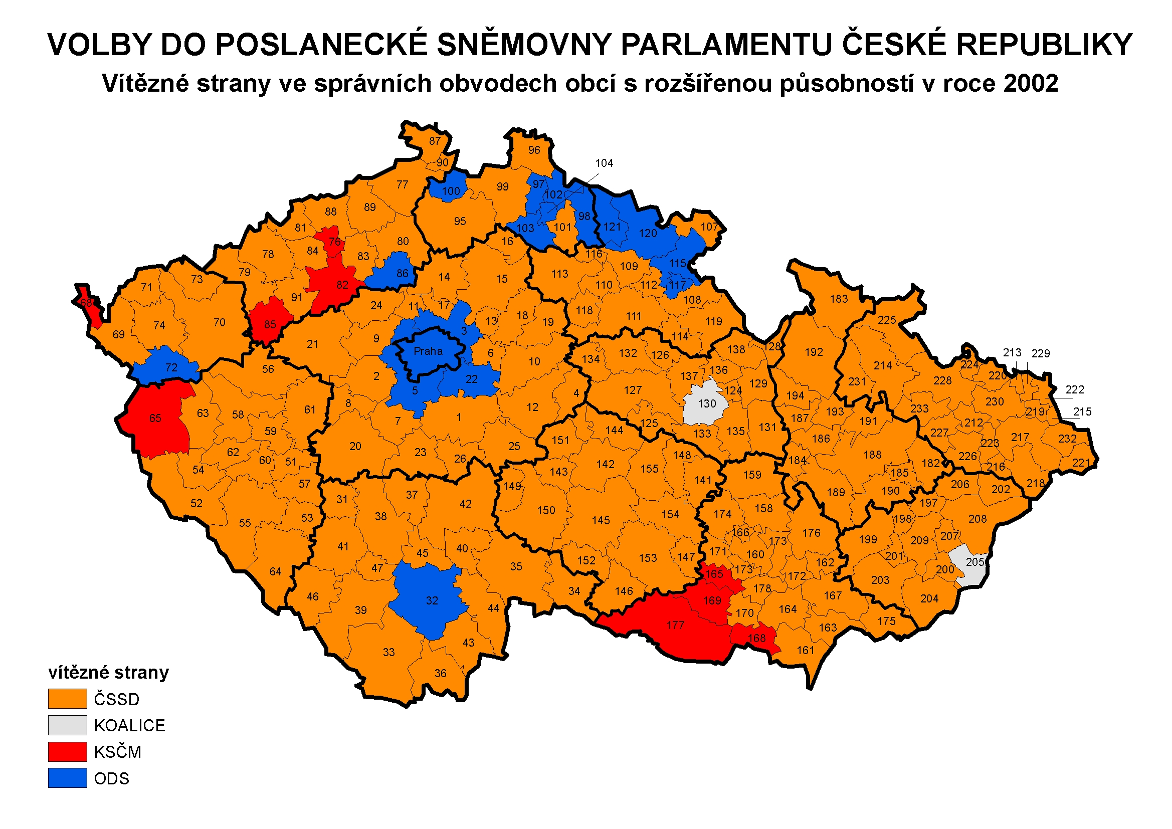 Vítězné strany ve správních obvodech obcí s rozšířenou působností v roce 2002