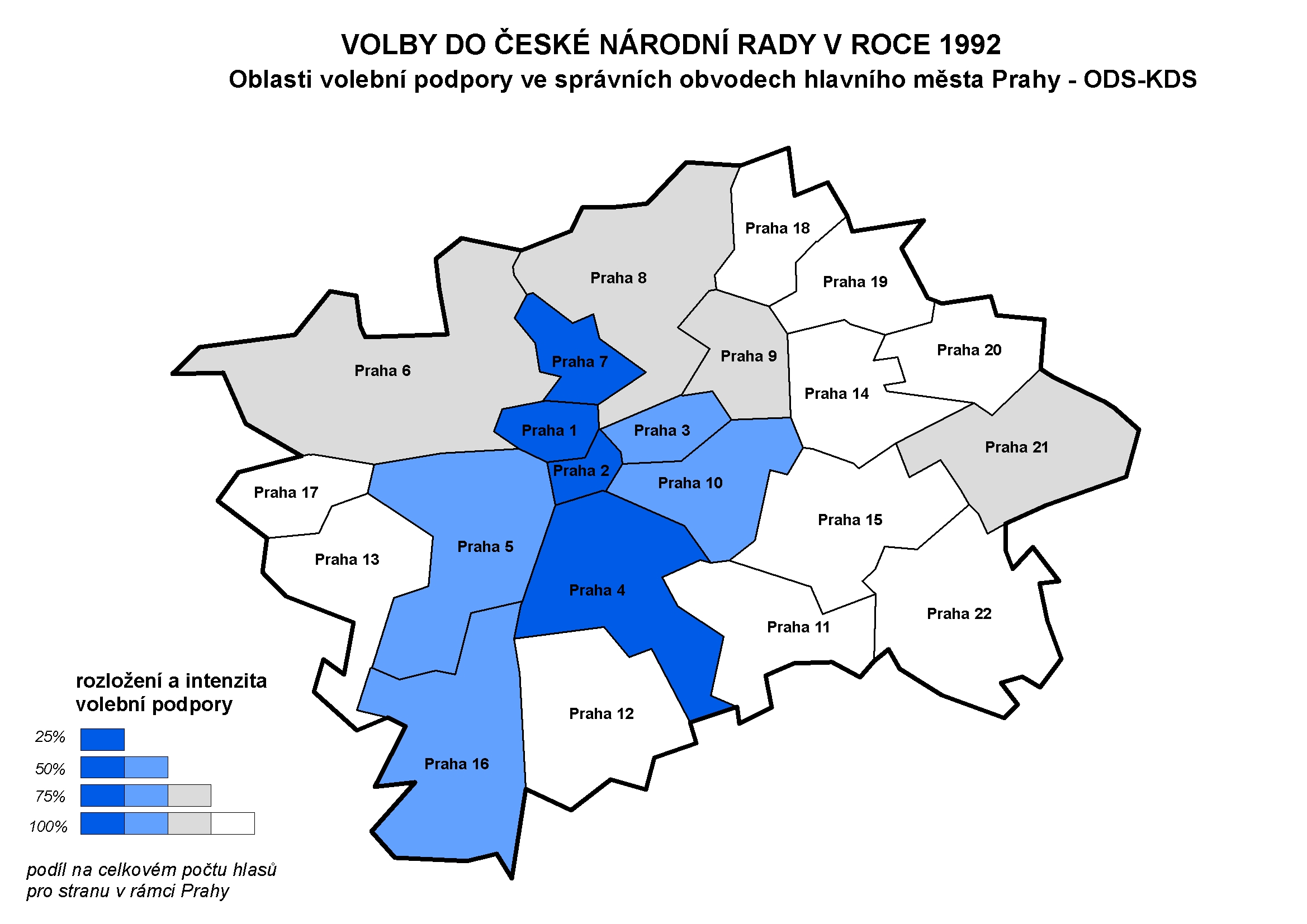 102 Oblasti volební podpory ve správních obvodech hlavního města Prahy – ODS-KDS