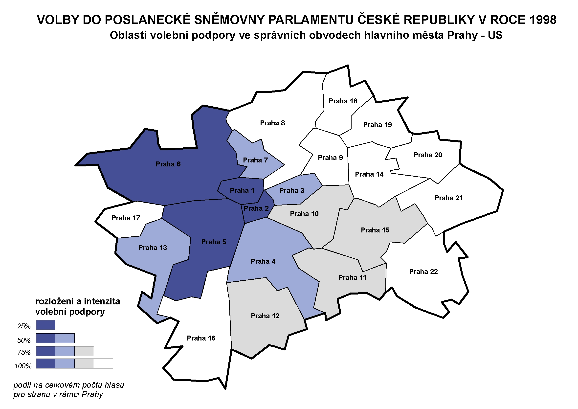 304 Oblasti volební podpory ve správních obvodech hlavního města Prahy – US