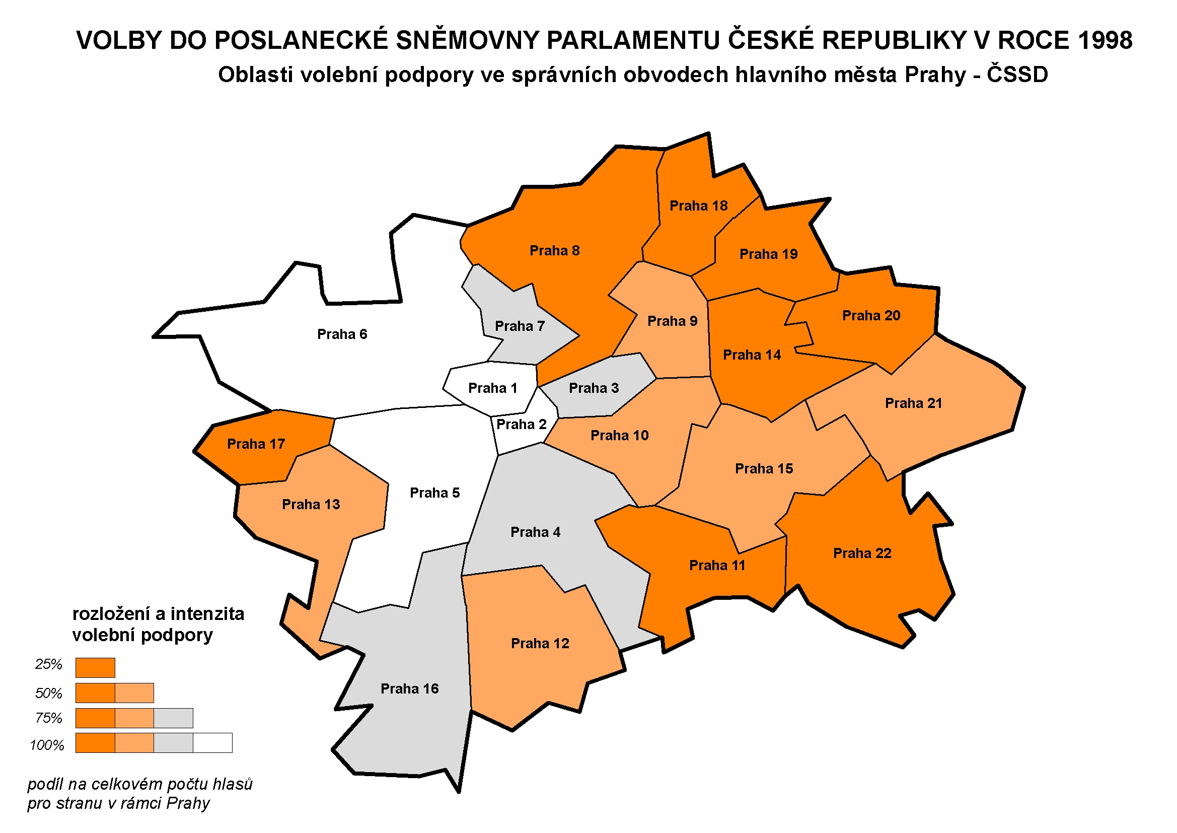 303 Oblasti volební podpory ve správních obvodech hlavního města Prahy – ČSSD