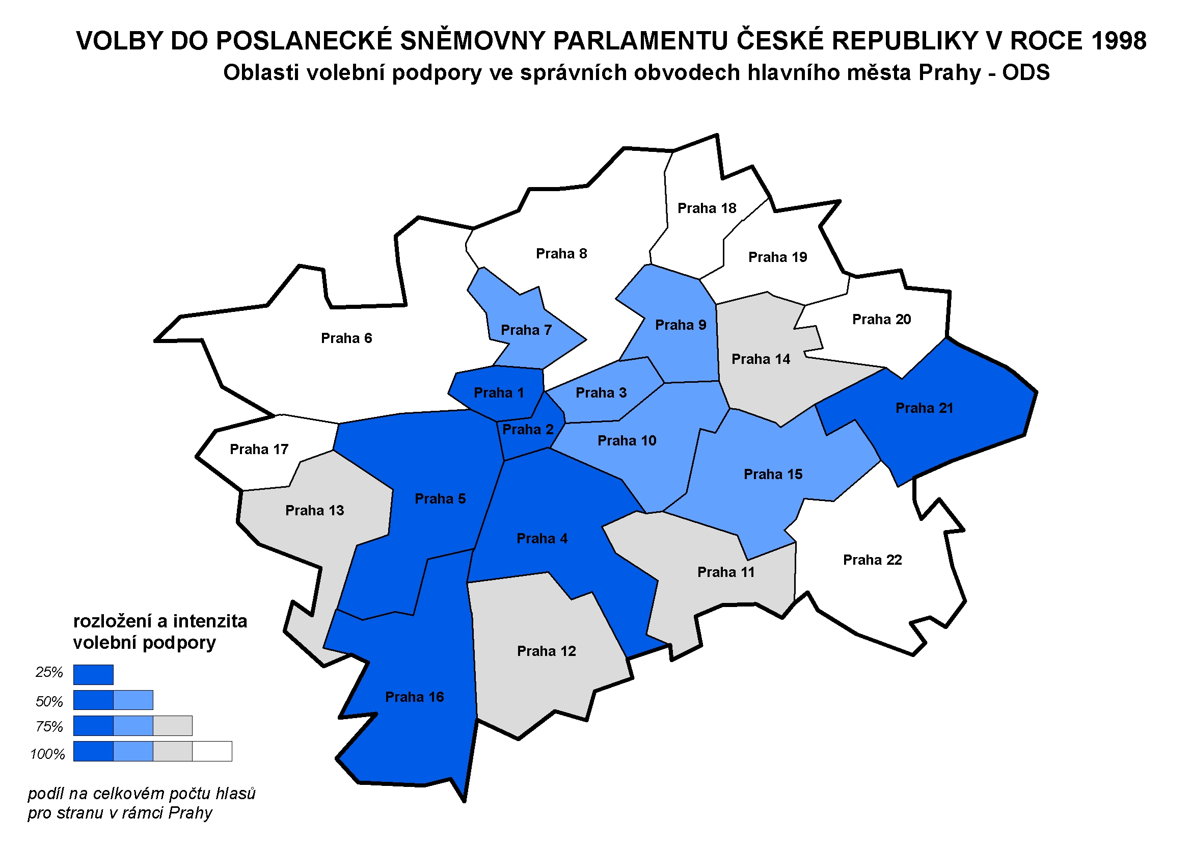 302 Oblasti volební podpory ve správních obvodech hlavního města Prahy – ODS