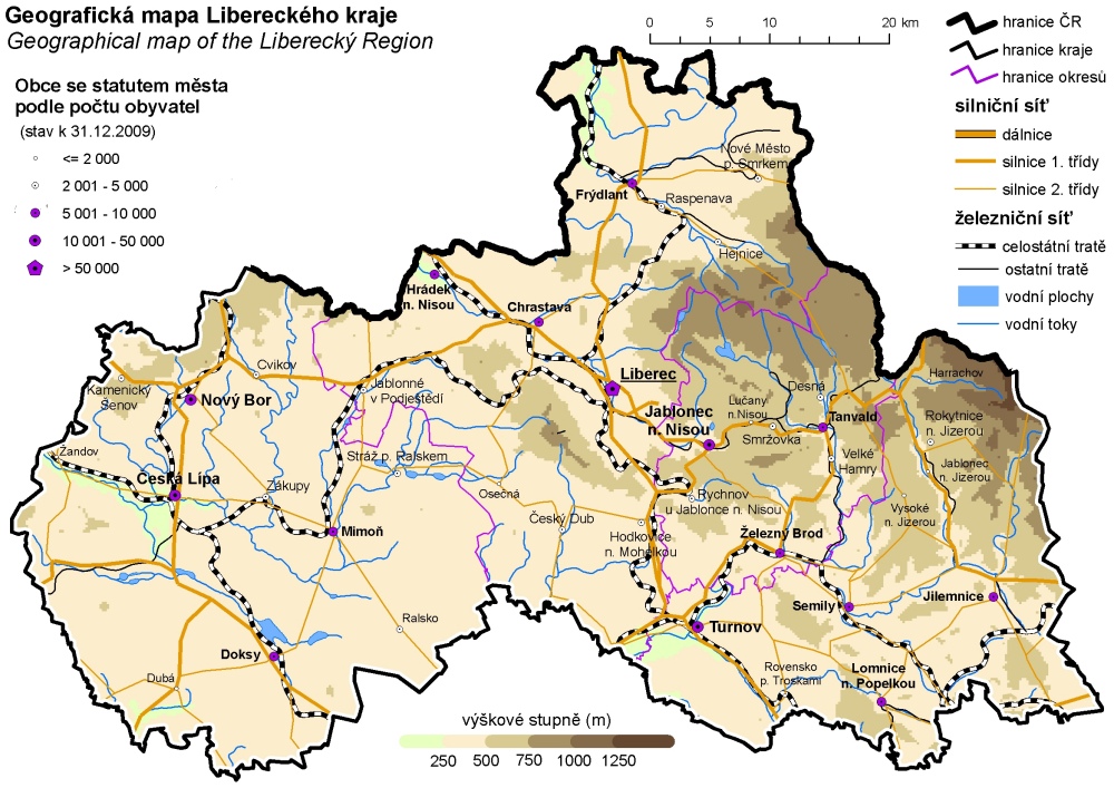 Geografická mapa Libereckého kraje