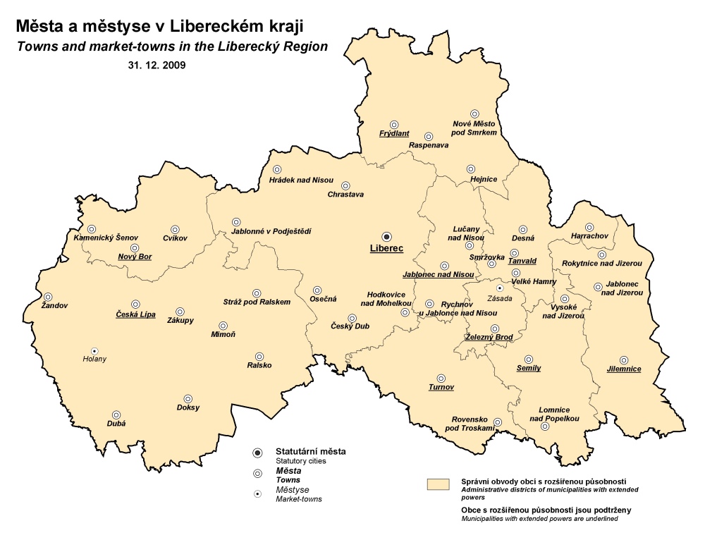 Města a městyse v Libereckém kraji