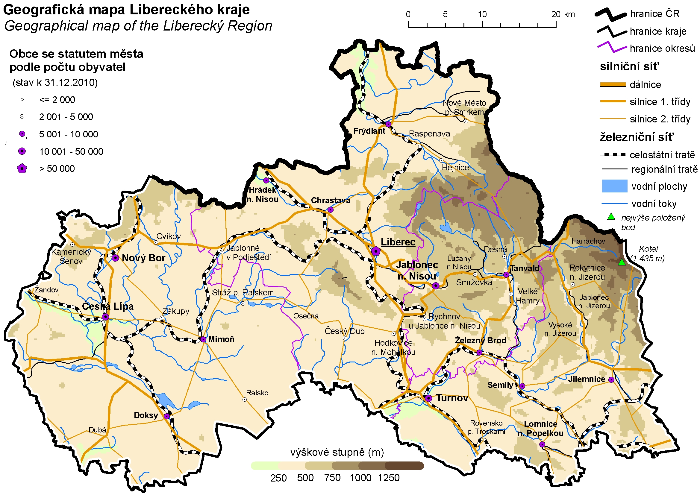 Geografická mapa Libereckého kraje