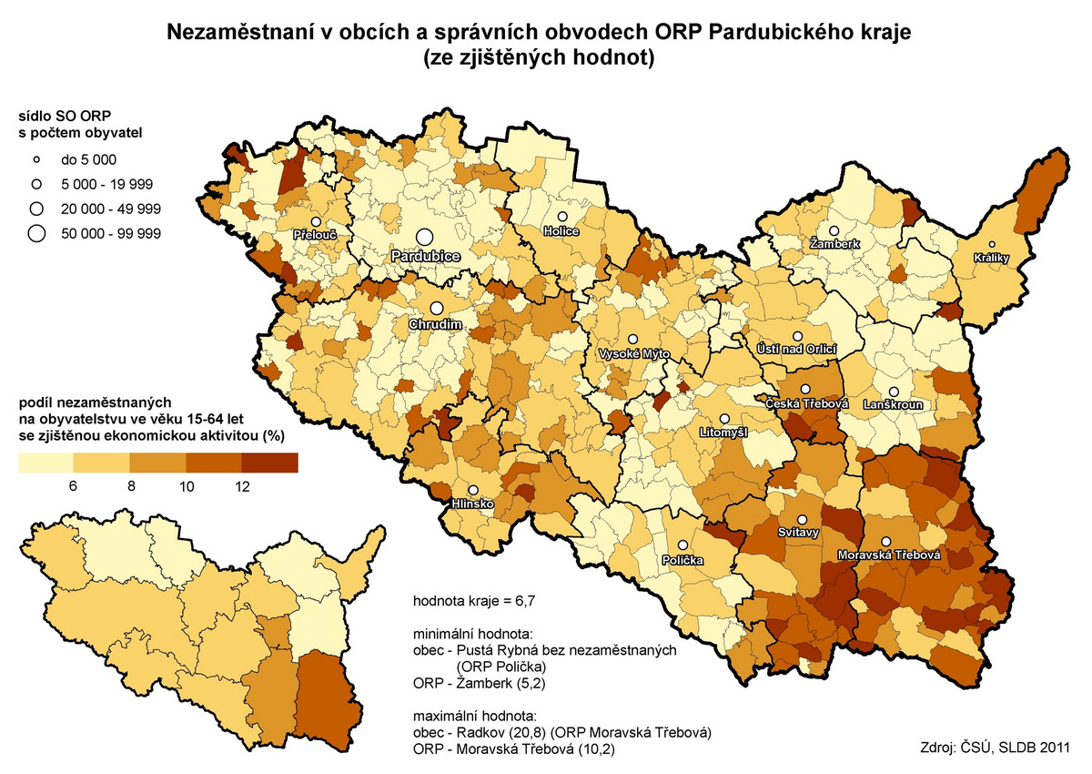 Nezaměstnaní v obcích a správních obvodech ORP Pardubického kraje
