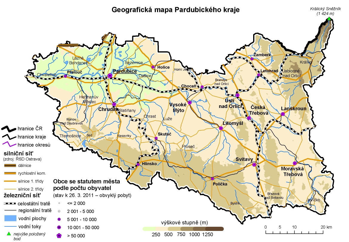 Geografická mapa Pardubického kraje