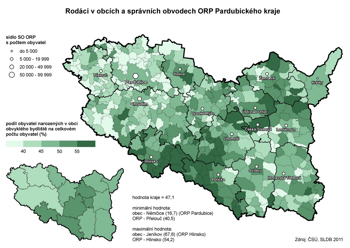 Rodáci v obcích a správních obvodech ORP Pardubického kraje