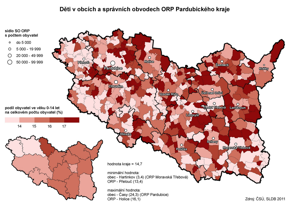 Děti v obcích a správních obvodech ORP Pardubického kraje