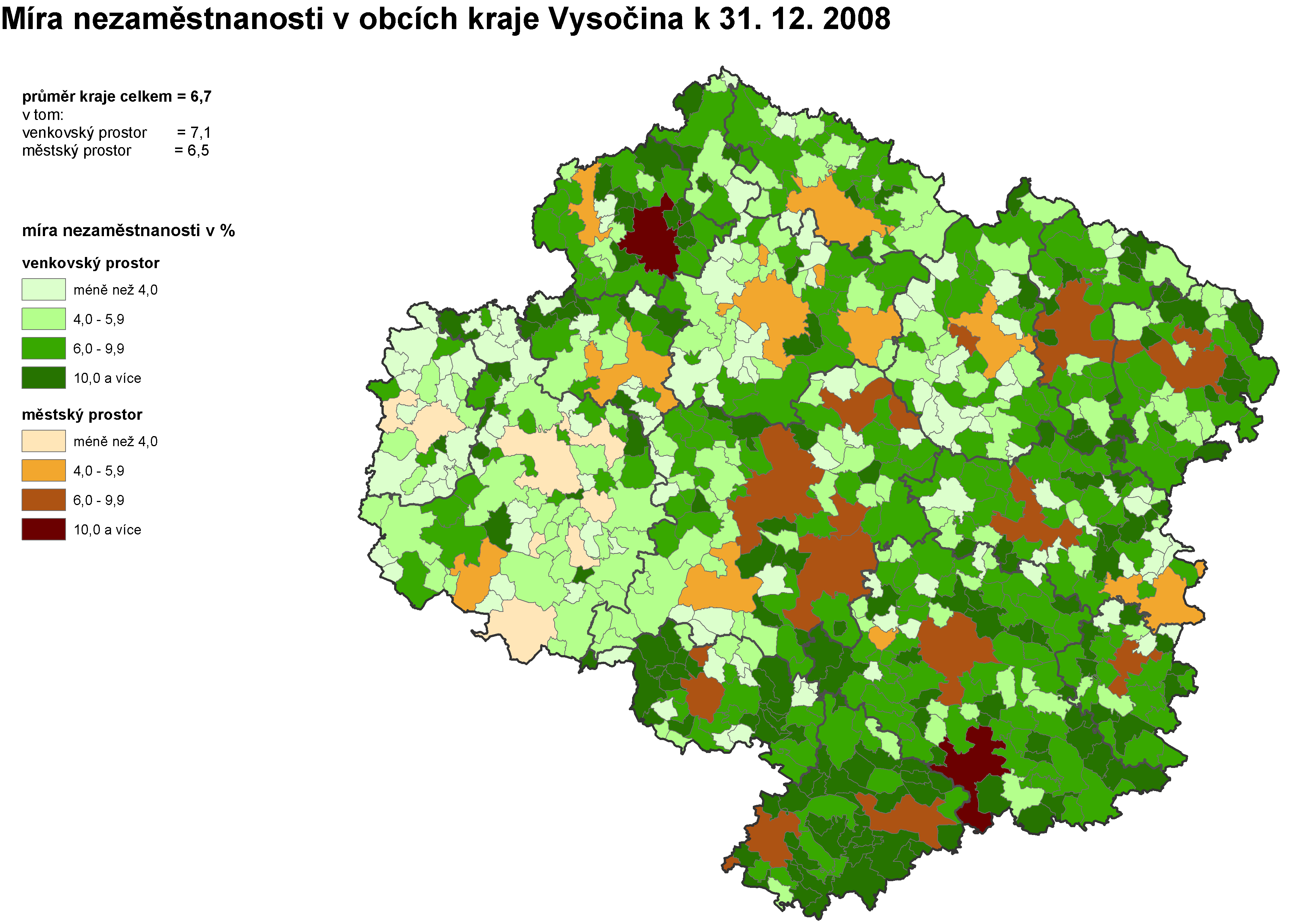 7. Míra nezaměstnanosti v obcích kraje Vysočina k 31. 12. 2008