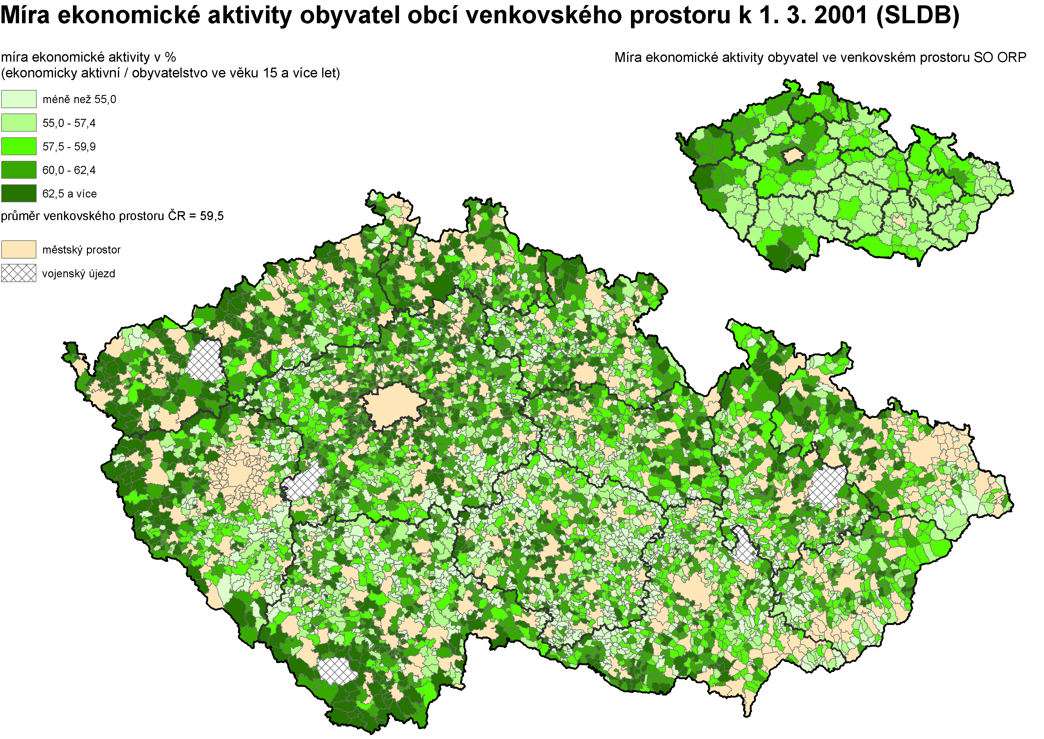 14. Míra ekonomické aktivity v obcích venkovského prostoru k 1. 3. 2001
