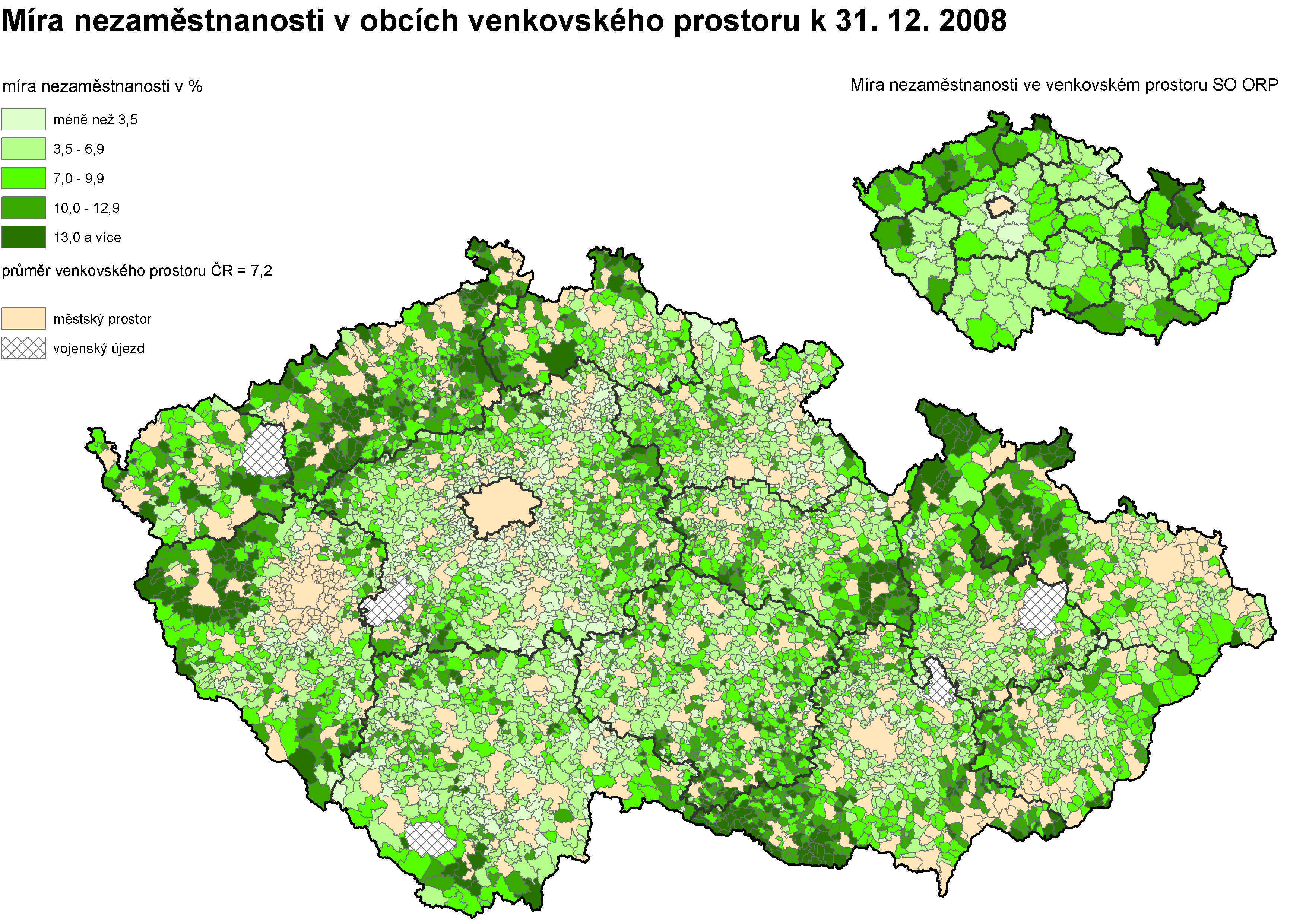 15. Míra nezaměstnanosti v obcích venkovského prostoru k 31. 12. 2008