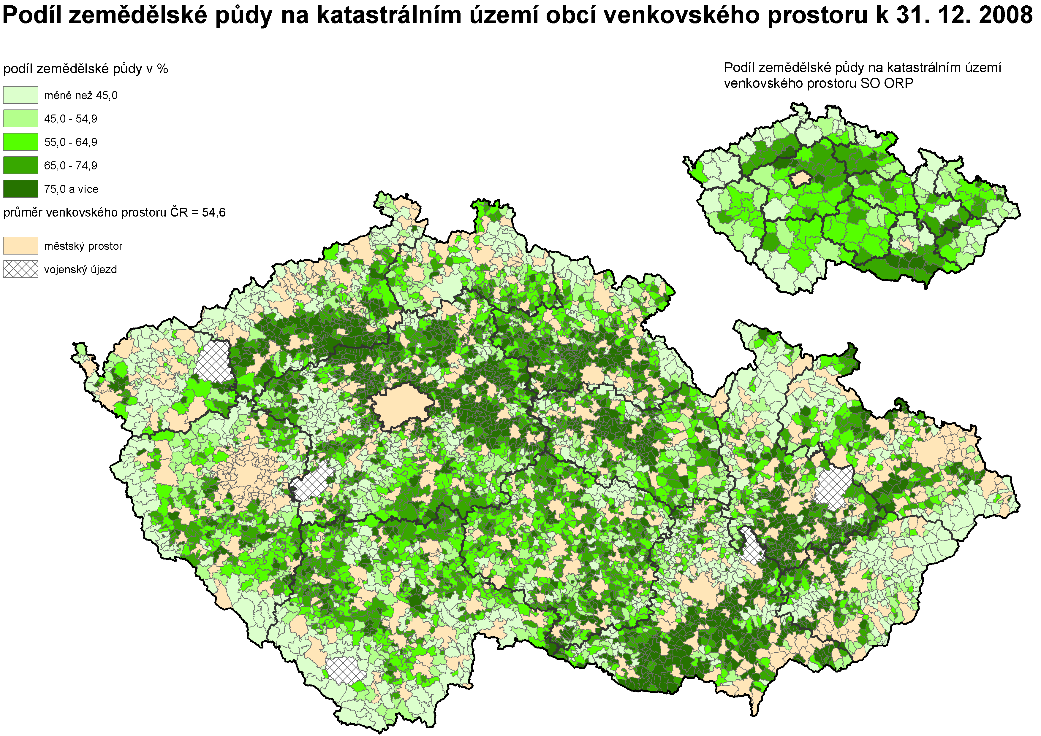 11. Podíl zemědělské půdy na katastrálním území obcí venkovského prostoru k 31. 12. 2008