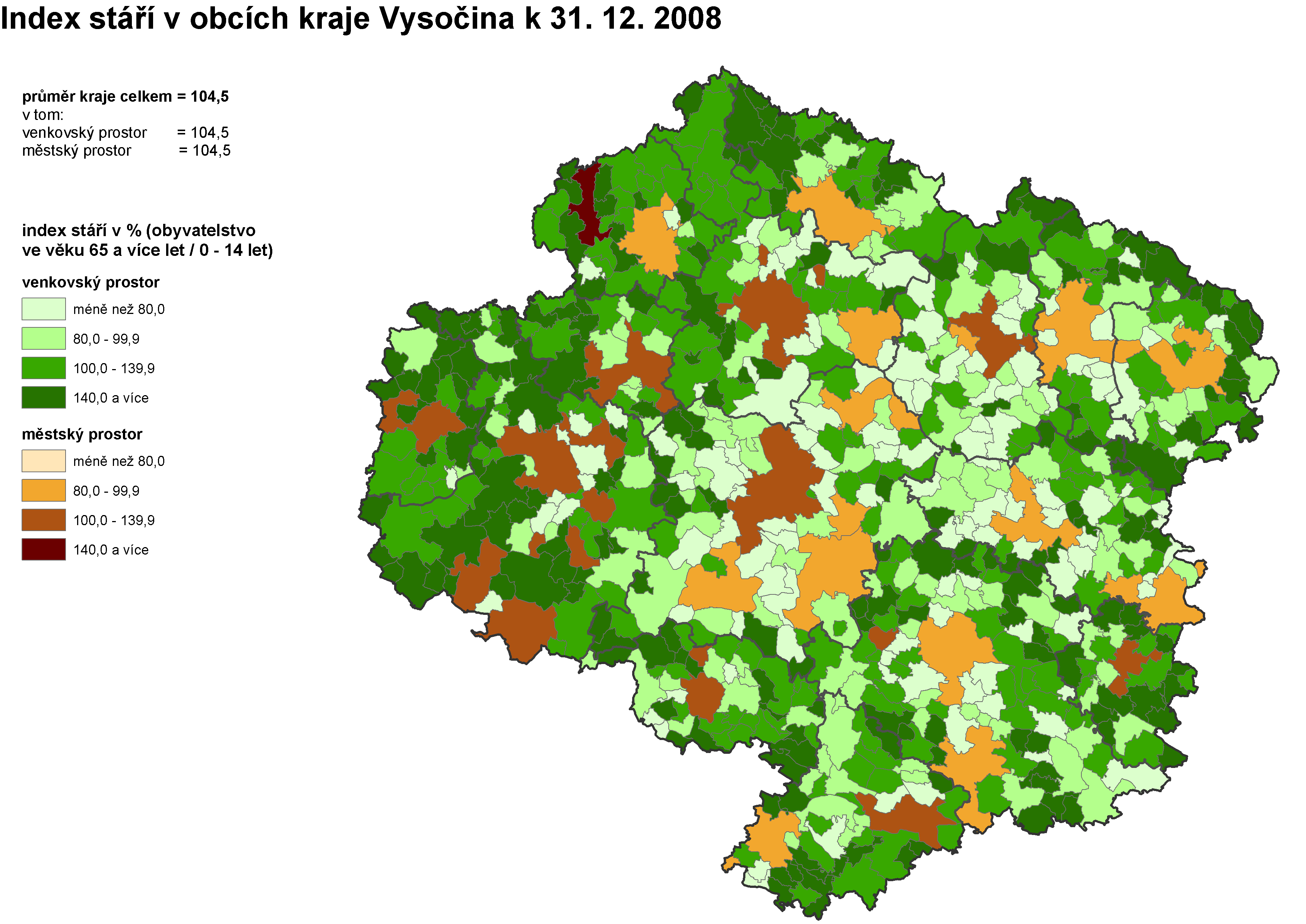 5. Index stáří v obcích kraje Vysočina k 31. 12. 2008