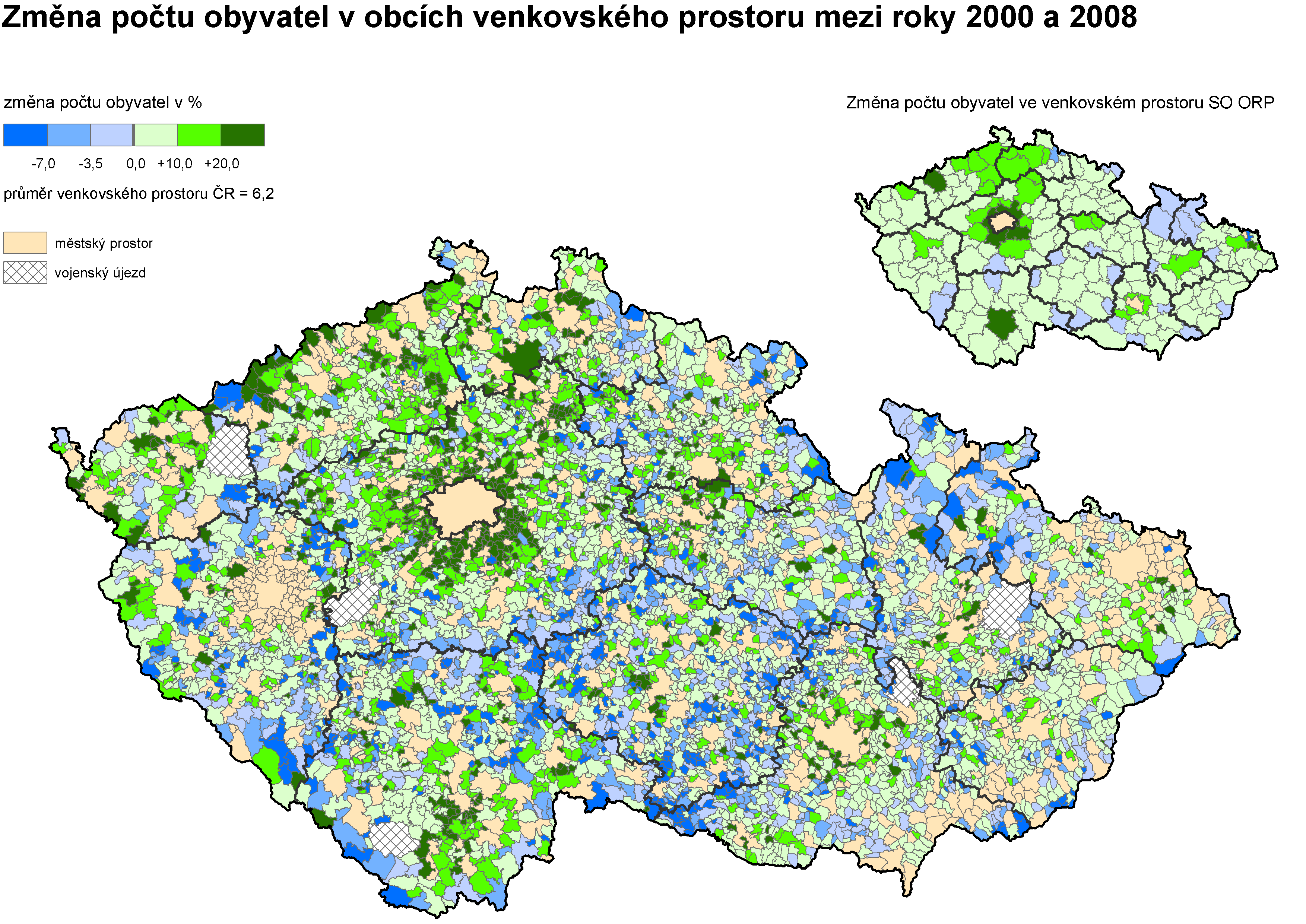 12. Změna počtu obyvatel v obcích venkovského prostoru mezi roky 2000 a 2008